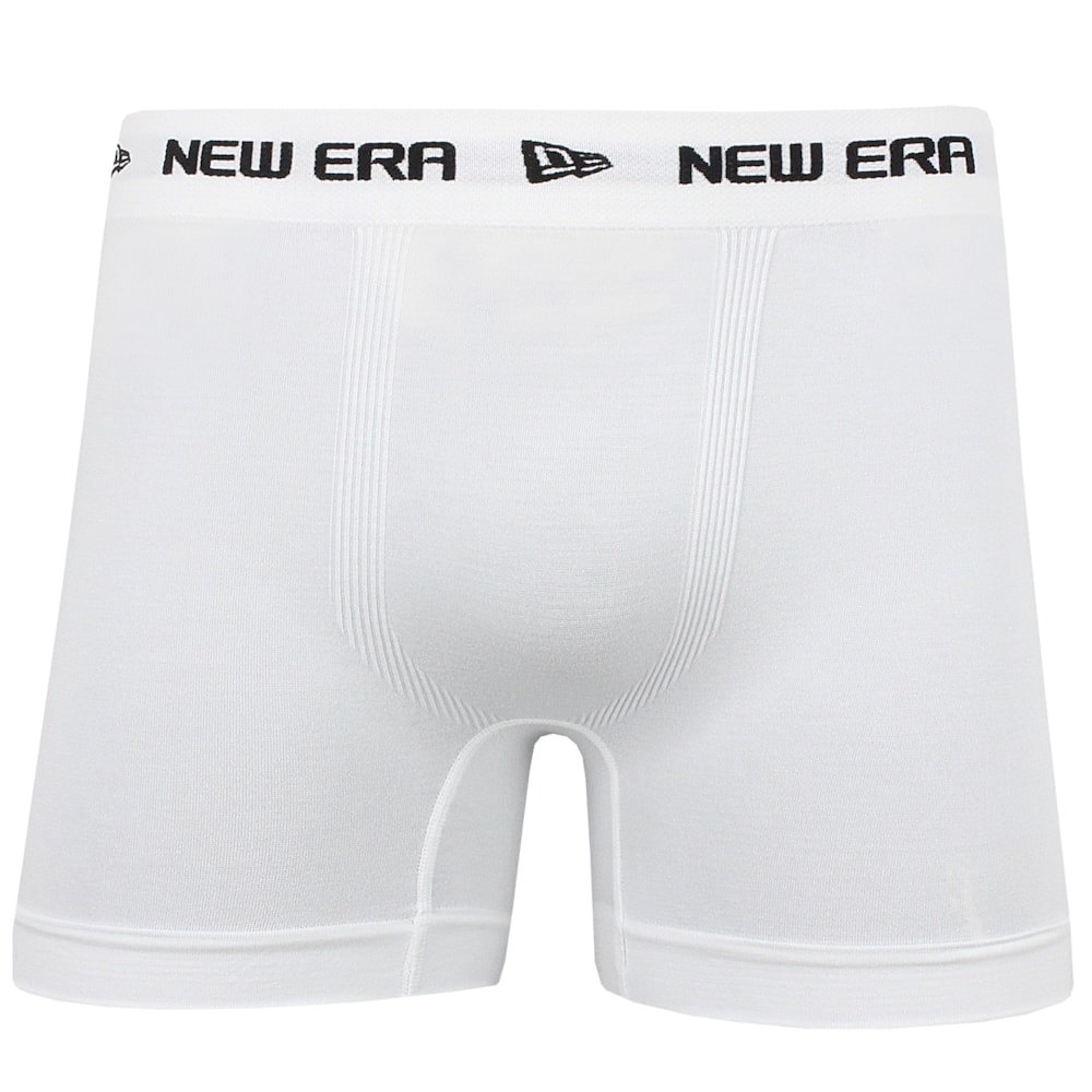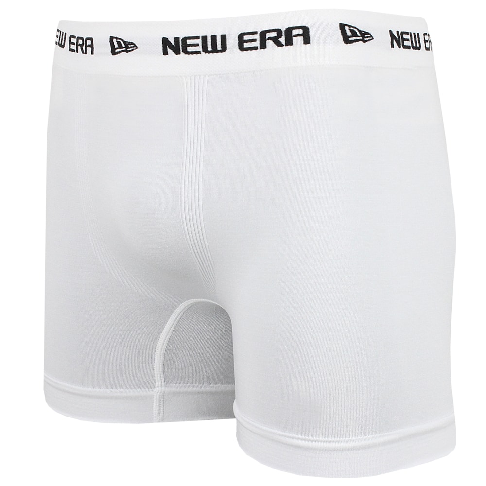A Cueca Boxer New Era Core White sem costuras é produzida em tecido 78% Modal, 18% Poliamida, 03% Elastano e 01% Poliprolpileno.
