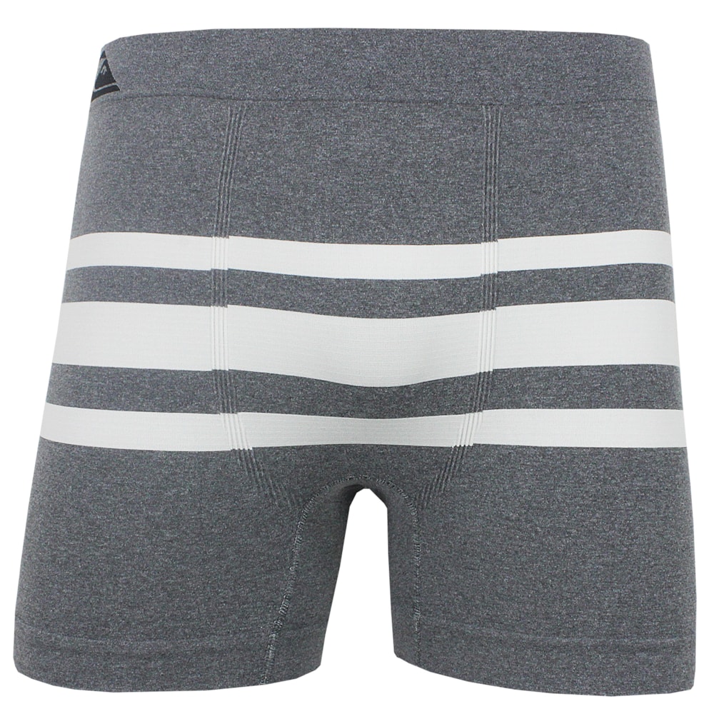 A Cueca Boxer Quiksilver Seamless Cinza Mescla sem costuras com modelagem long leg é produzida em tecido 94% Poliamida, 05% Elastano e 01% Poliprolpileno.