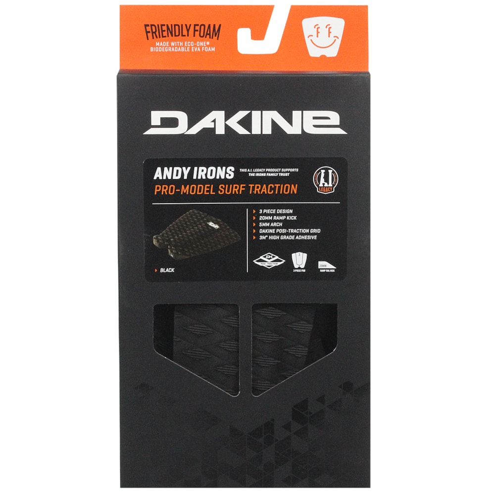 O Deck Dakine Andy Irons foi desenvolvido para honrar a memória de Andy Irons (1978-2010). Este Deck é parte da coleção da assinatura do Andy Irons para a Dakine, que inclui uma doação anual de parte do valor das vendas desses produtos à confiança do seu filho. Esse modelo foi produzido em 3 peças e apresenta um arco central de 5mm com Kick Tail de 20mm, é produzido de espuma amigável biodegradável, vendida em embalagens sem plástico e usa adesivo 3M® de grau marítimo.