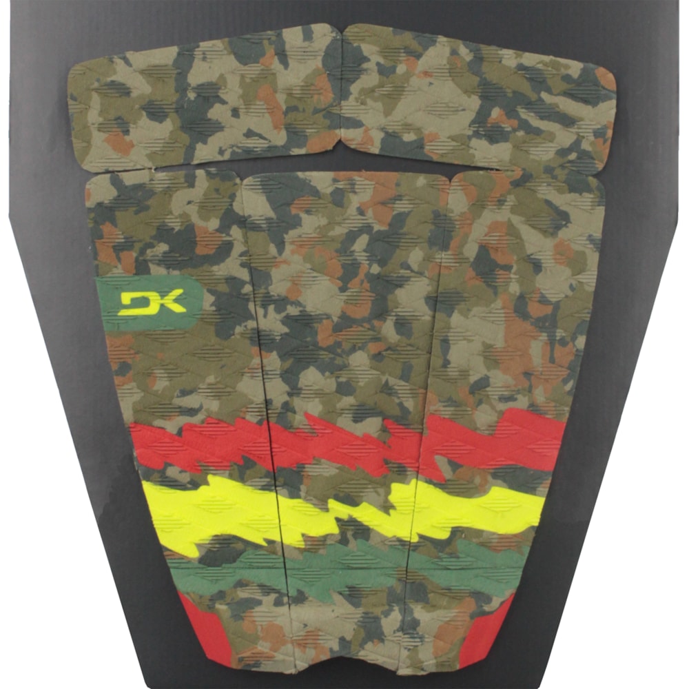 O Deck para Prancha de Surf Dakine Bruce Irons Rasta apresenta as medidas personalizadas do arco e kicktail usadas por um dos ícones do surf. Este Deck de cinco peças apresenta um arco central de 7mm e um kicktail de 25 mm com bordas chanfradas. Como todo Deck Dakine, é produzido de Espuma amigável biodegradável, vendida em embalagens sem plástico e usa adesivo 3M® de grau marítimo.