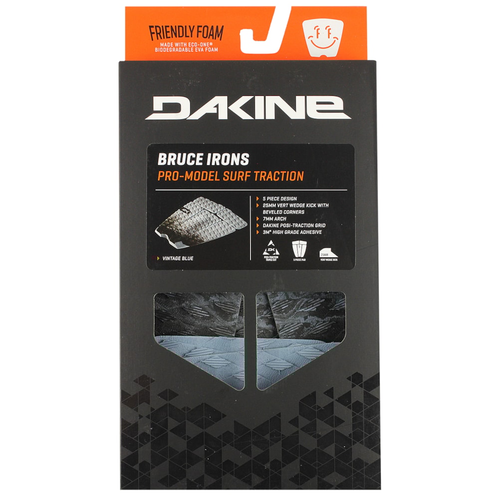 O Deck para Prancha de Surf Dakine Bruce Irons Vintage Blue apresenta as medidas personalizadas do arco e kicktail usadas por um dos ícones do surf. Este Deck de cinco peças apresenta um arco central de 7mm e um kicktail de 25 mm com bordas chanfradas. Como todo Deck Dakine, é produzido de Espuma amigável biodegradável, vendida em embalagens sem plástico e usa adesivo 3M® de grau marítimo.