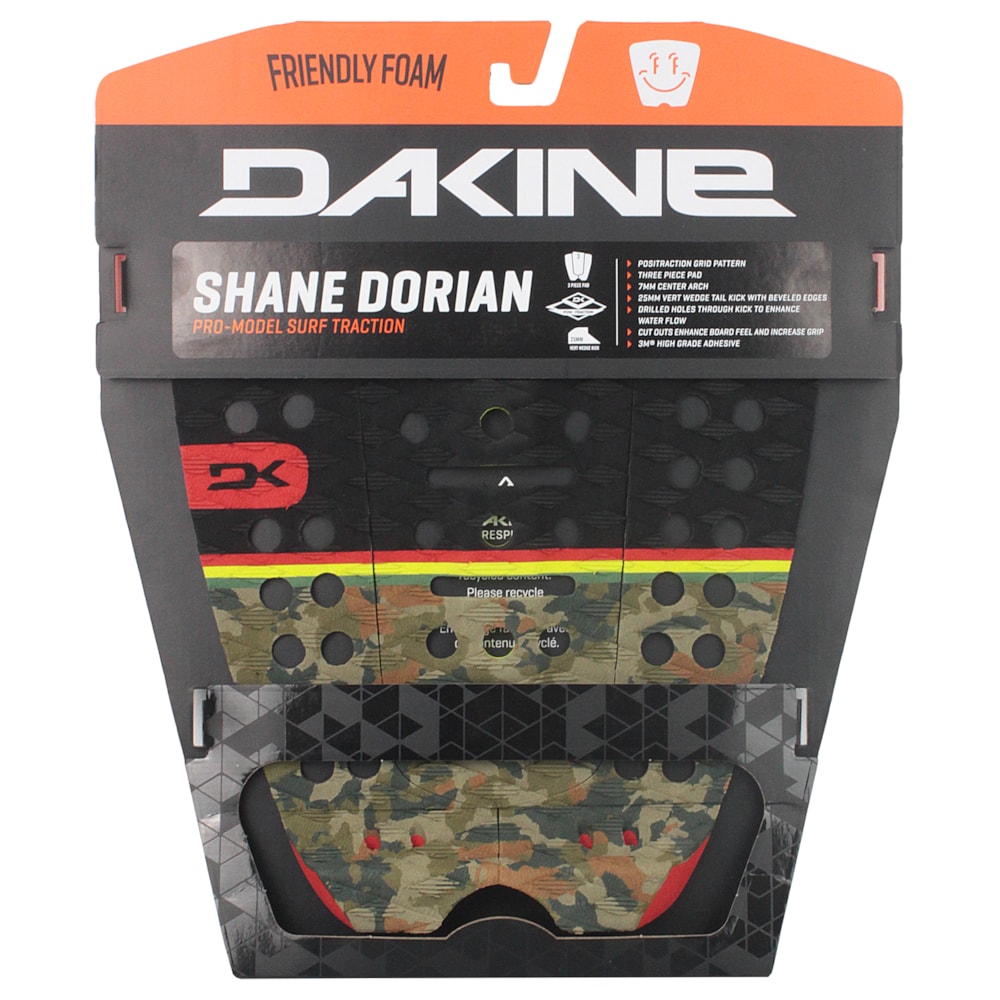 O Deck para Prancha de Surf Dakine Shane Dorian Rasta é produzido em 3 peças de EVA de alta densidade.