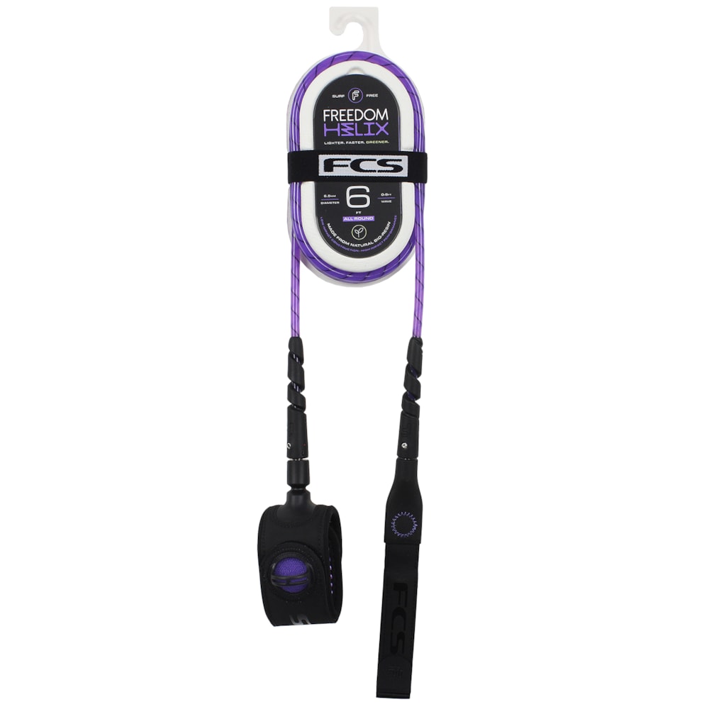 O Leash FCS Freedom Helix 6 X 6.5 All Round foi desenvolvido à partir de bio-resina à base de milho de origem natural, que resulta em um cabo mais leve e mais reistente.