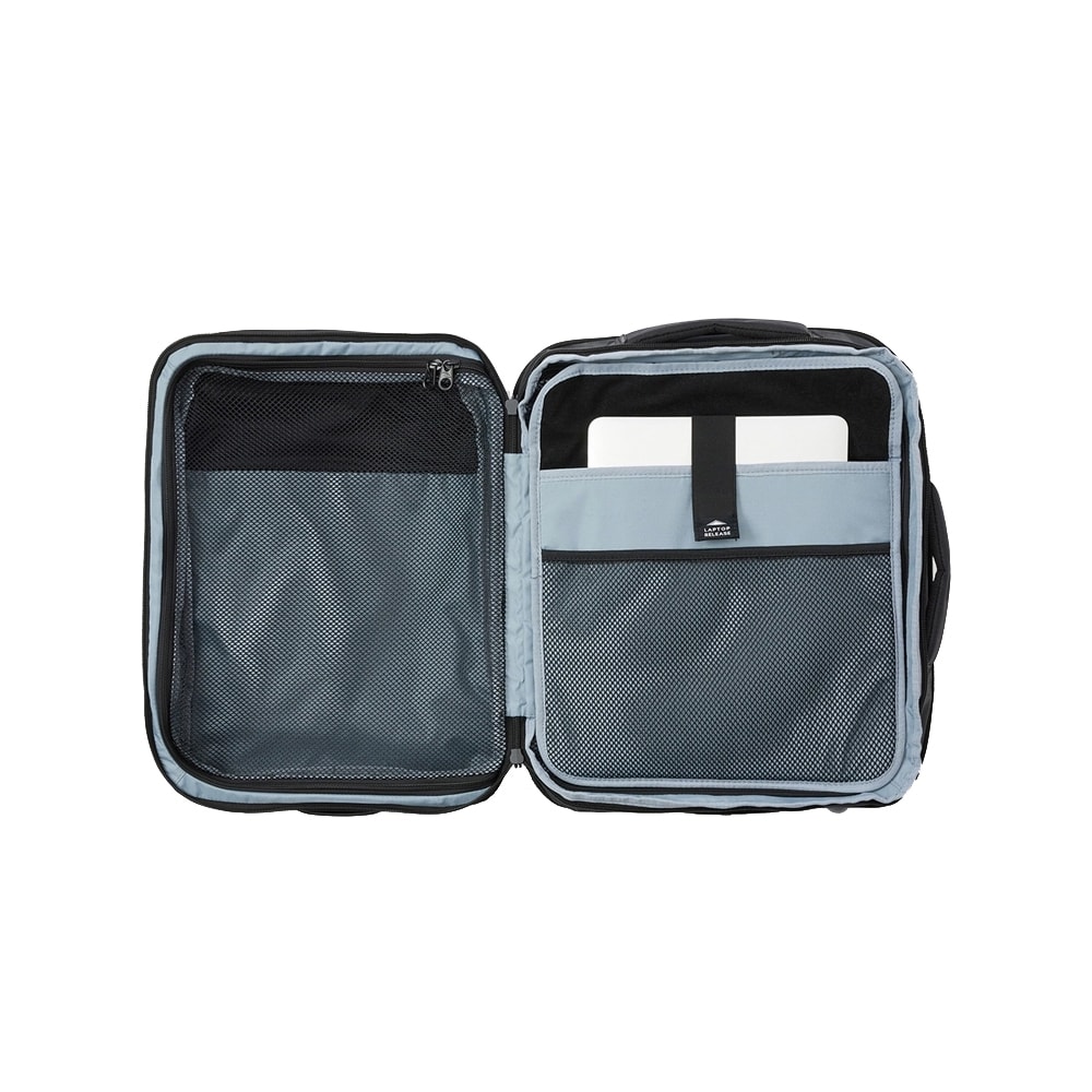 O compartimento para laptop mantém seus dispositivos protegidos, e a alça telescópica com rodas de poliuretano garante mobilidade sem esforço. A construção em sanduíche ajuda na organização para levar tudo de forma prática e segura.