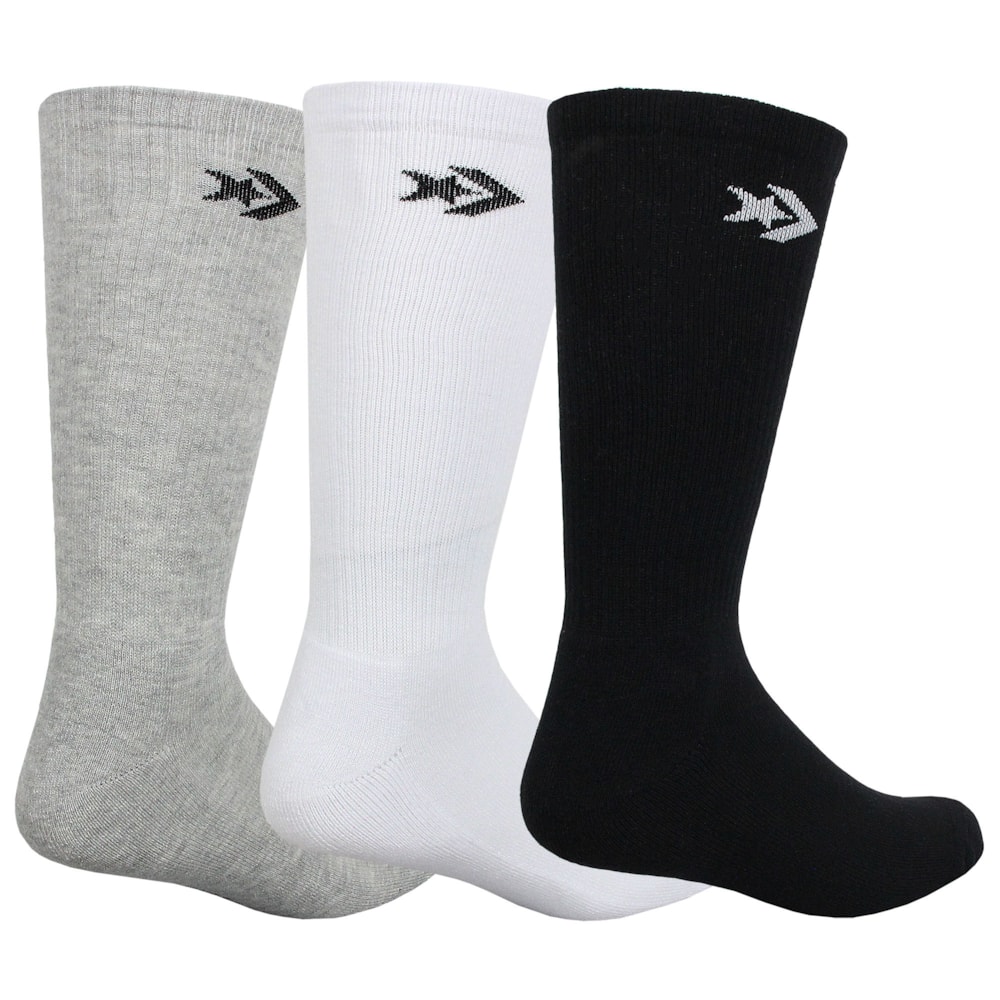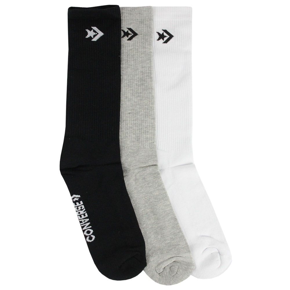 A Meia Converse Skate Star Black White Grey é um modelo de cano alto, fabricada com tecido macio e elástico que se molda ao pé para conforto durante todo o dia. Kit com 3 pares nas cores preta, branca e cinza.