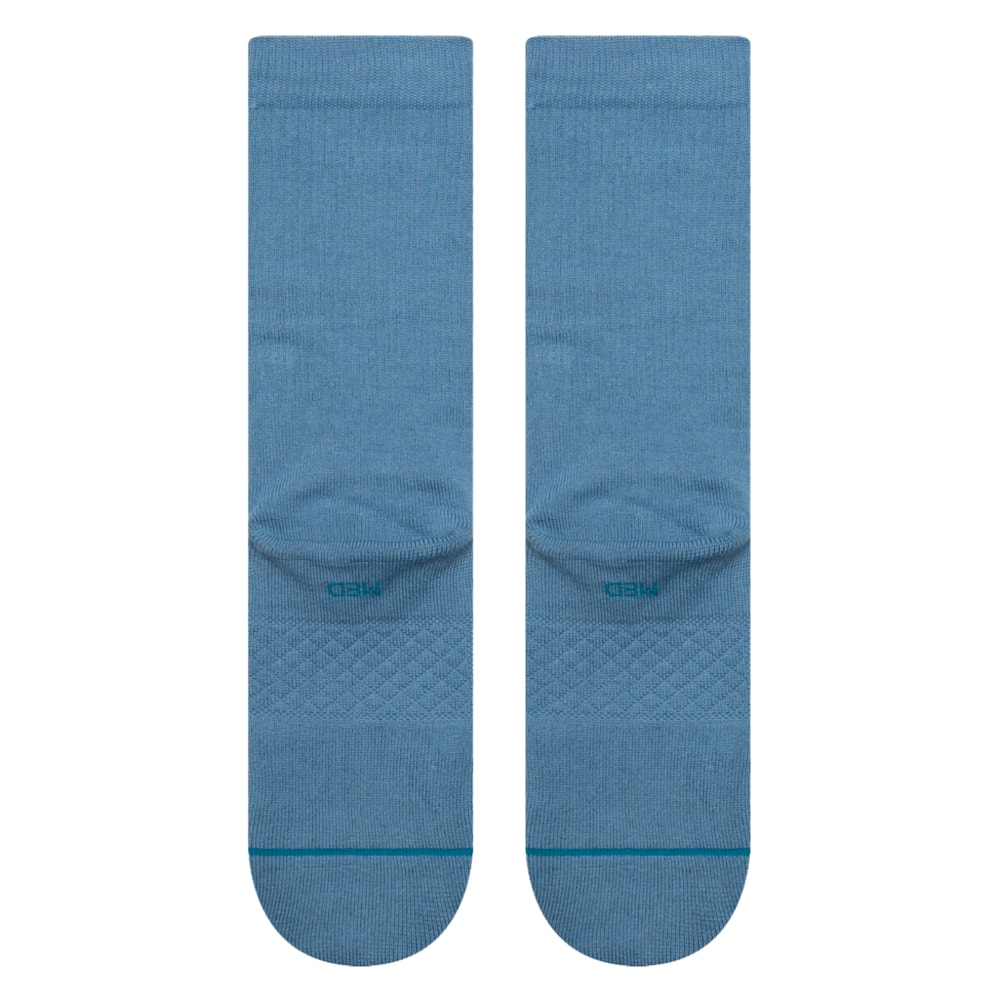 A Meia Stance Icon Blue é um modelo de cano alto, fabricada com tecido macio e elástico que se molda ao pé para conforto durante todo o dia.