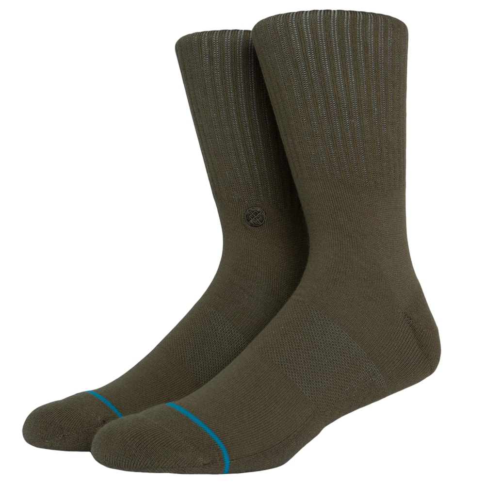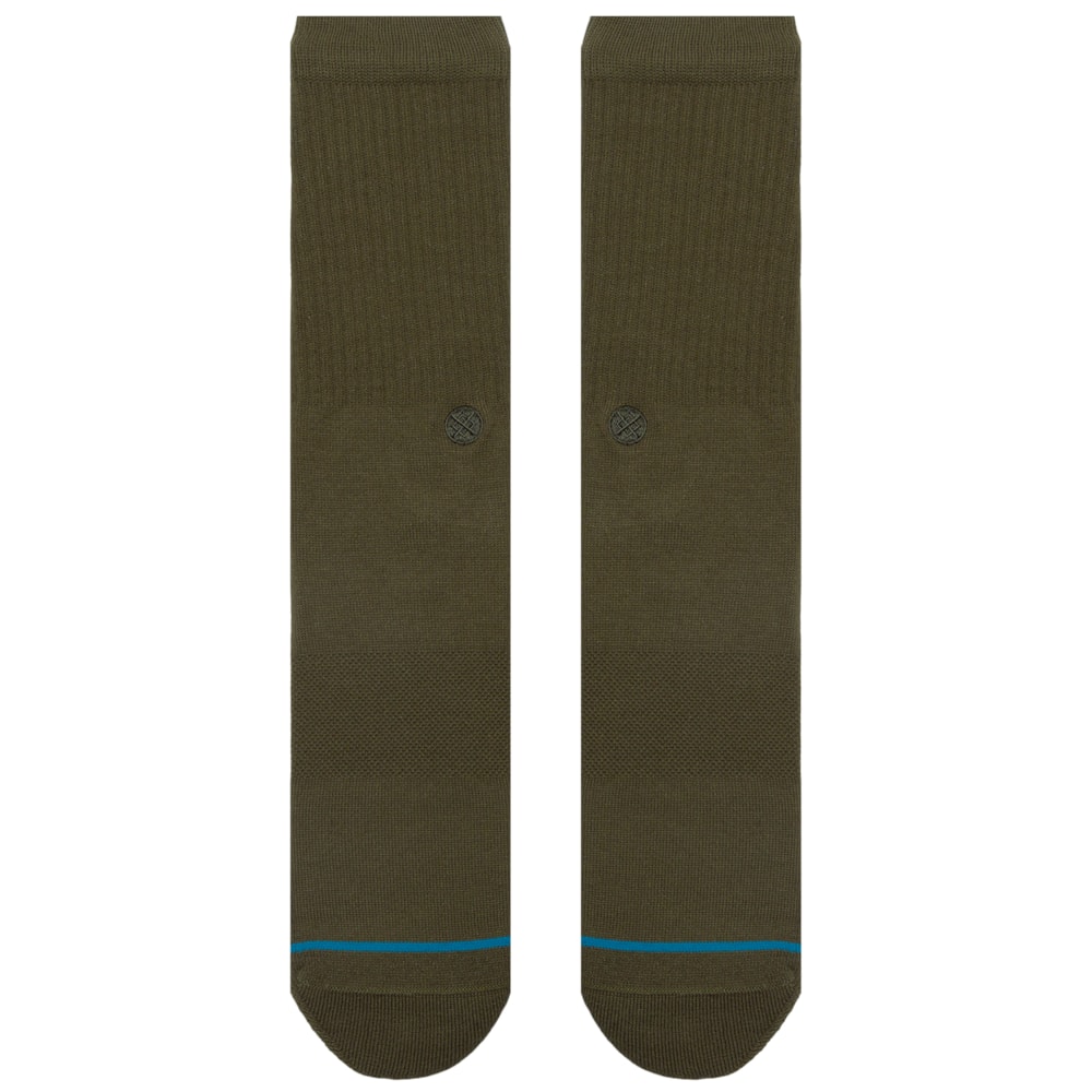A Meia Stance Icon Green é um modelo de cano alto, fabricada com tecido macio e elástico que se molda ao pé para conforto durante todo o dia.