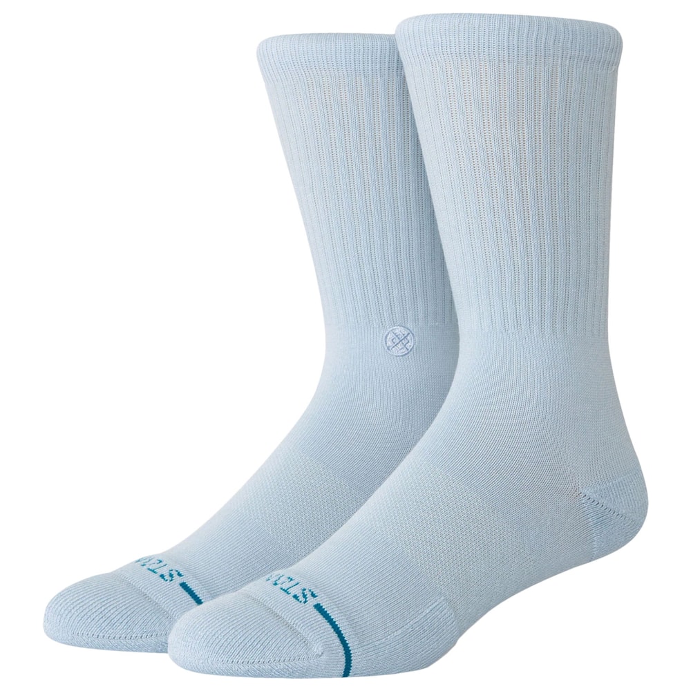 A Meia Stance Icon Ice Blue é um modelo de cano alto, fabricada com tecido macio e elástico que se molda ao pé para conforto durante todo o dia.