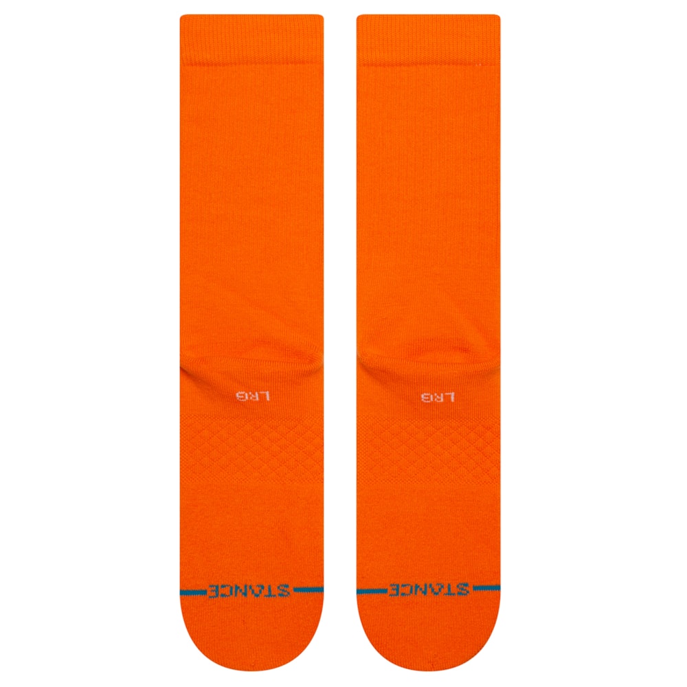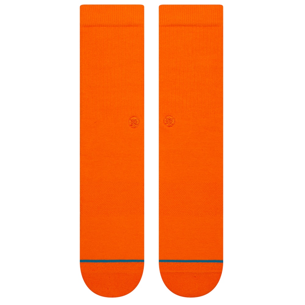 A Meia Stance Icon Orange é um modelo de cano alto, fabricada com tecido macio e elástico que se molda ao pé para conforto durante todo o dia.