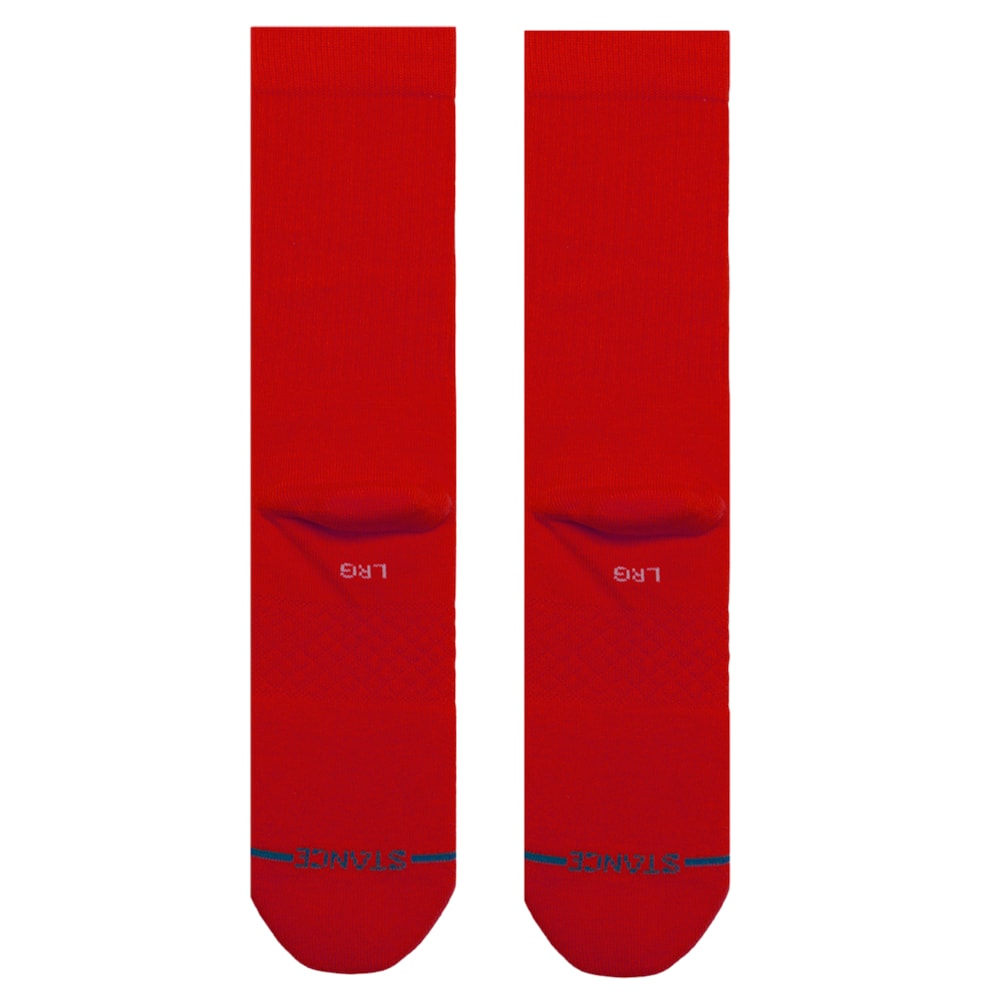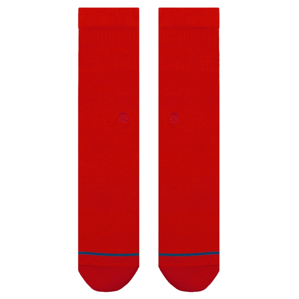 A Meia Stance Icon Red é um modelo de cano alto, fabricada com tecido macio e elástico que se molda ao pé para conforto durante todo o dia.