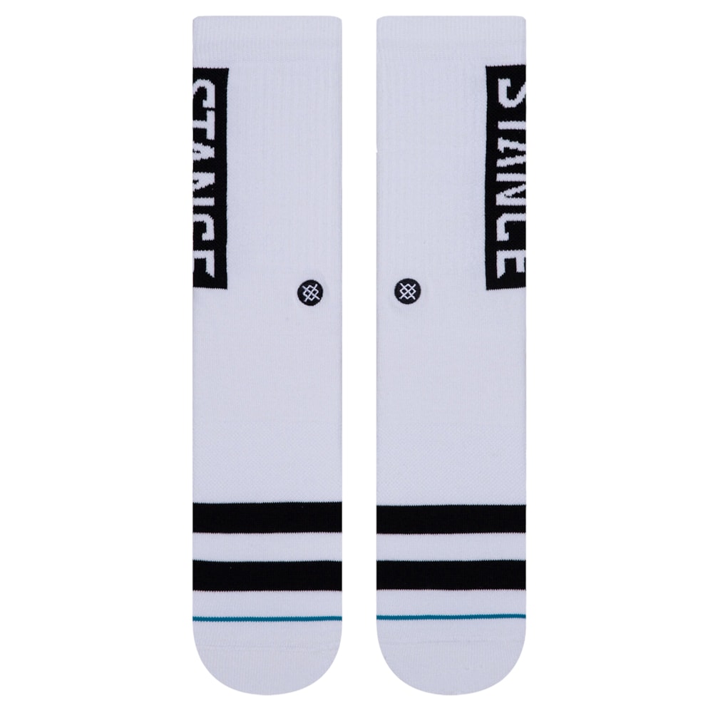 A Meia Stance OG Branca é um modelo de cano alto, fabricada com tecido macio e elástico que se molda ao pé para conforto durante todo o dia.