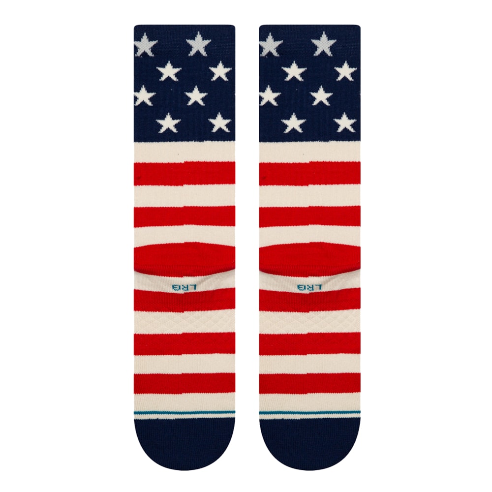 A Meia Stance The Fourth ST Crew Red é um modelo de cano alto, fabricada com tecido macio e elástico que se molda ao pé para conforto durante todo o dia.