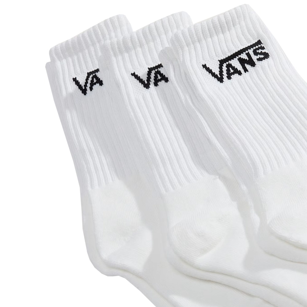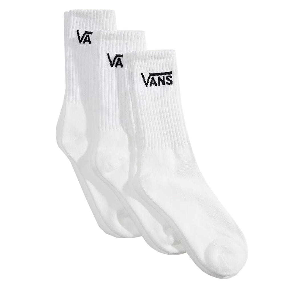 A Meia Vans Classic Crew White Black Kit com 3 Pares é fabricada com tecido macio e elástico que se molda ao pé para conforto durante todo o dia.