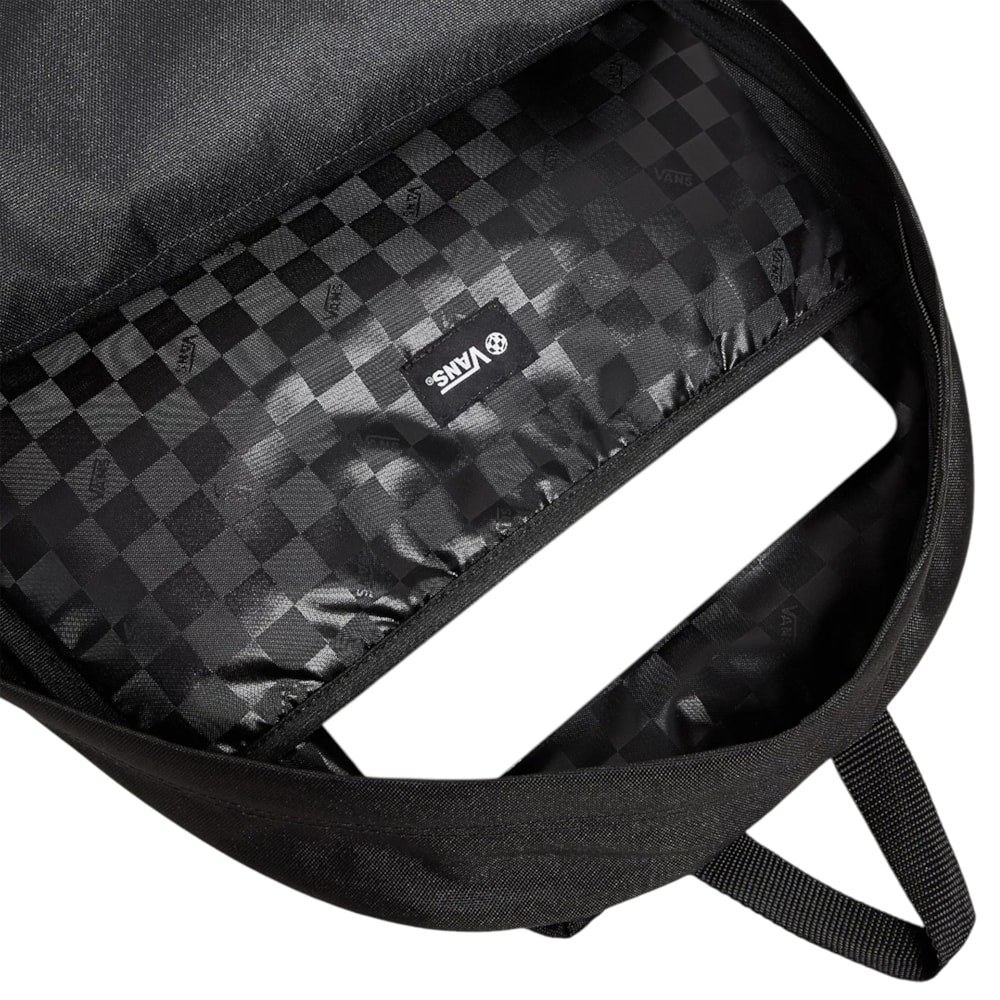A Mochila Vans Old Skool Backpack Black White é produzida em 100% em poliéster extremamente resistente. Amplo compartimento central,bolso frontal para melhor organizar os objetos do dia a dia.Compartimento acolchoado para Notebook. Logo Vans em silk no painel frontal.