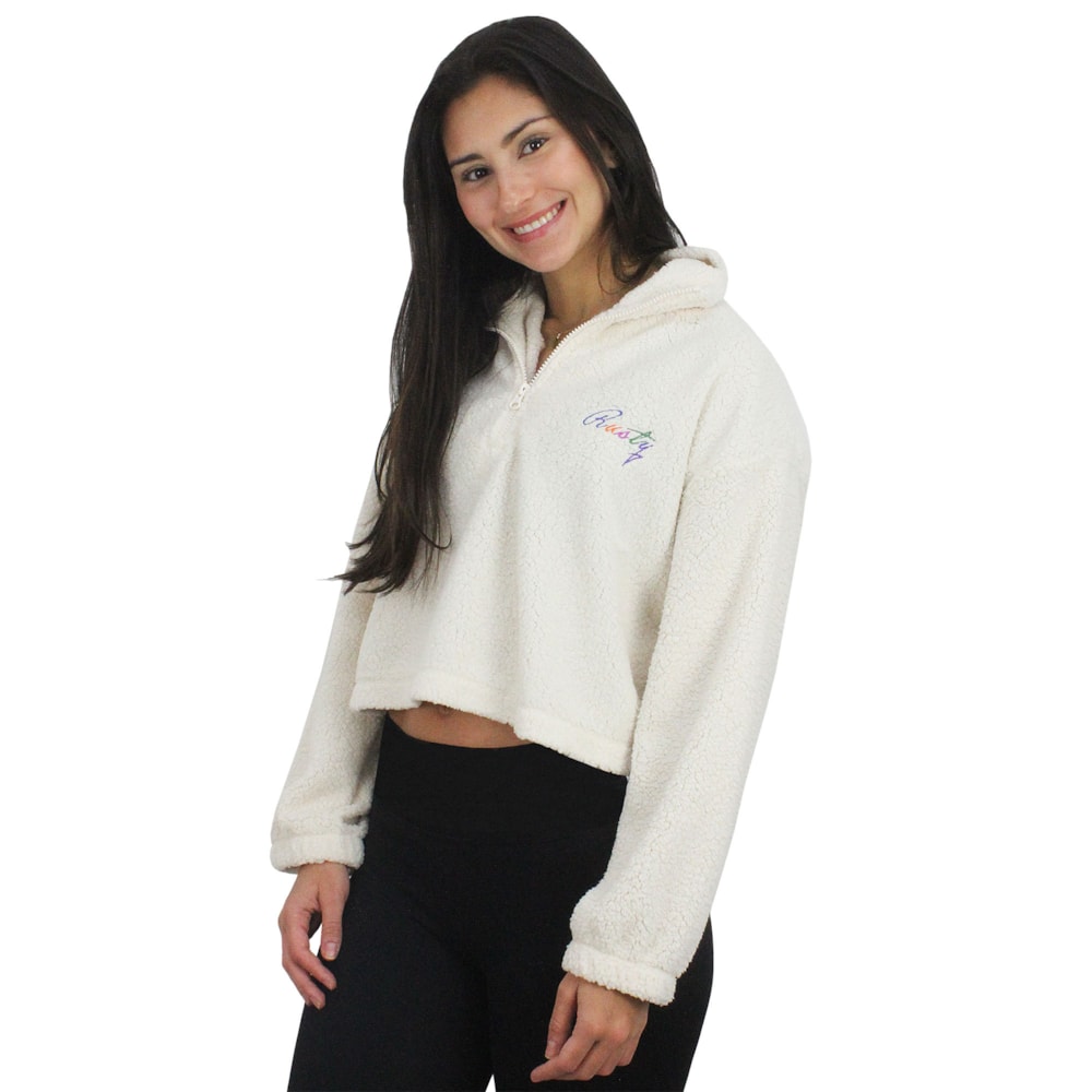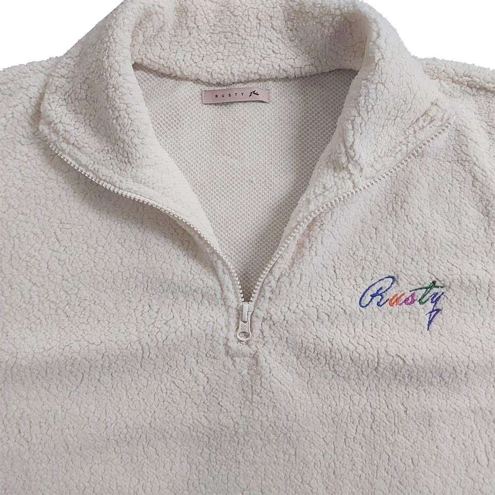 O Moletom Rusty Colors Off White é produzido em tecidot Fleece 100% Poliéster, modelagem cropped, gola alta e zíper frontal. O logo Rusty Colors é apresentado em bordado no peito.