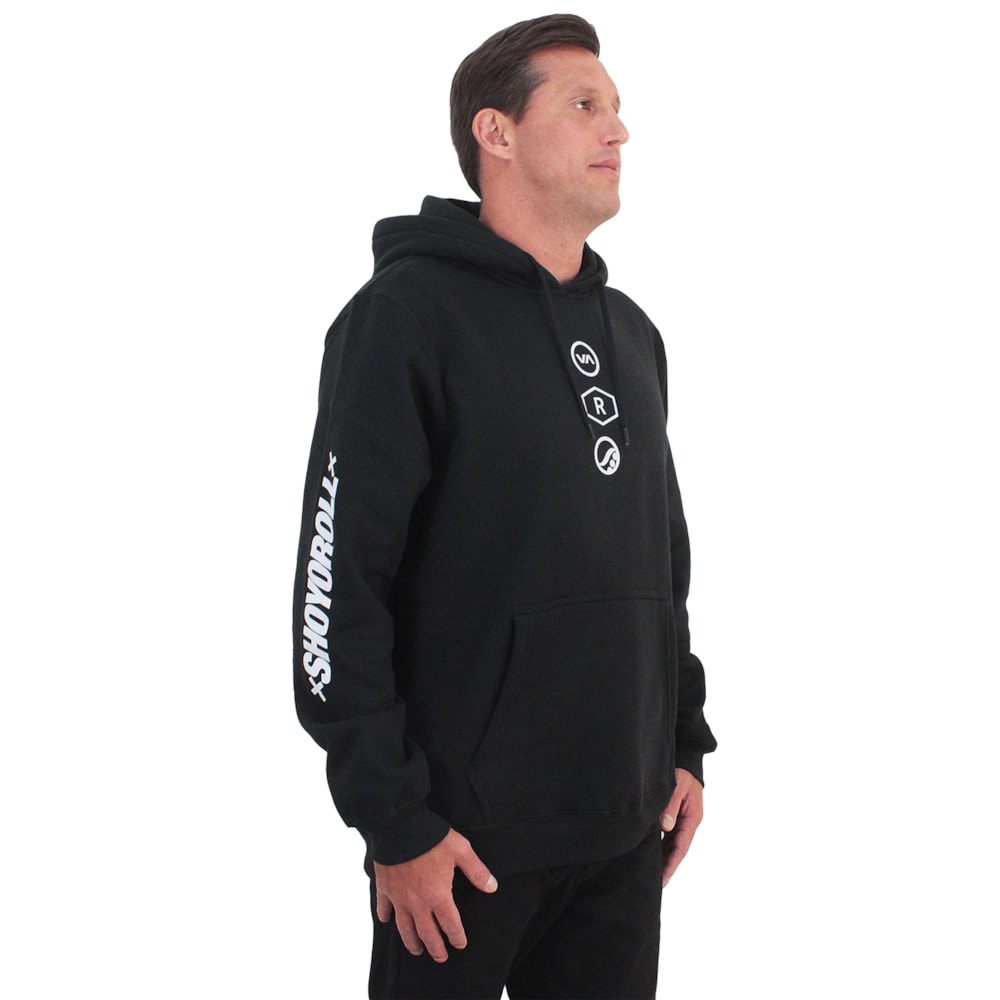 O Moletom RVCA Ruotolo Stack 280 Black é produzido com moletom flanelado 280G, 50% Algodão e 50% Poliéster. Essa combinação de fibras garante um moletom com caimento perfeito e ótima proteção térmica. Bolso canguru, punho e barra com acabamento elástico. Estampa exclusiva RVCA em silk no peito, costas e mangas.