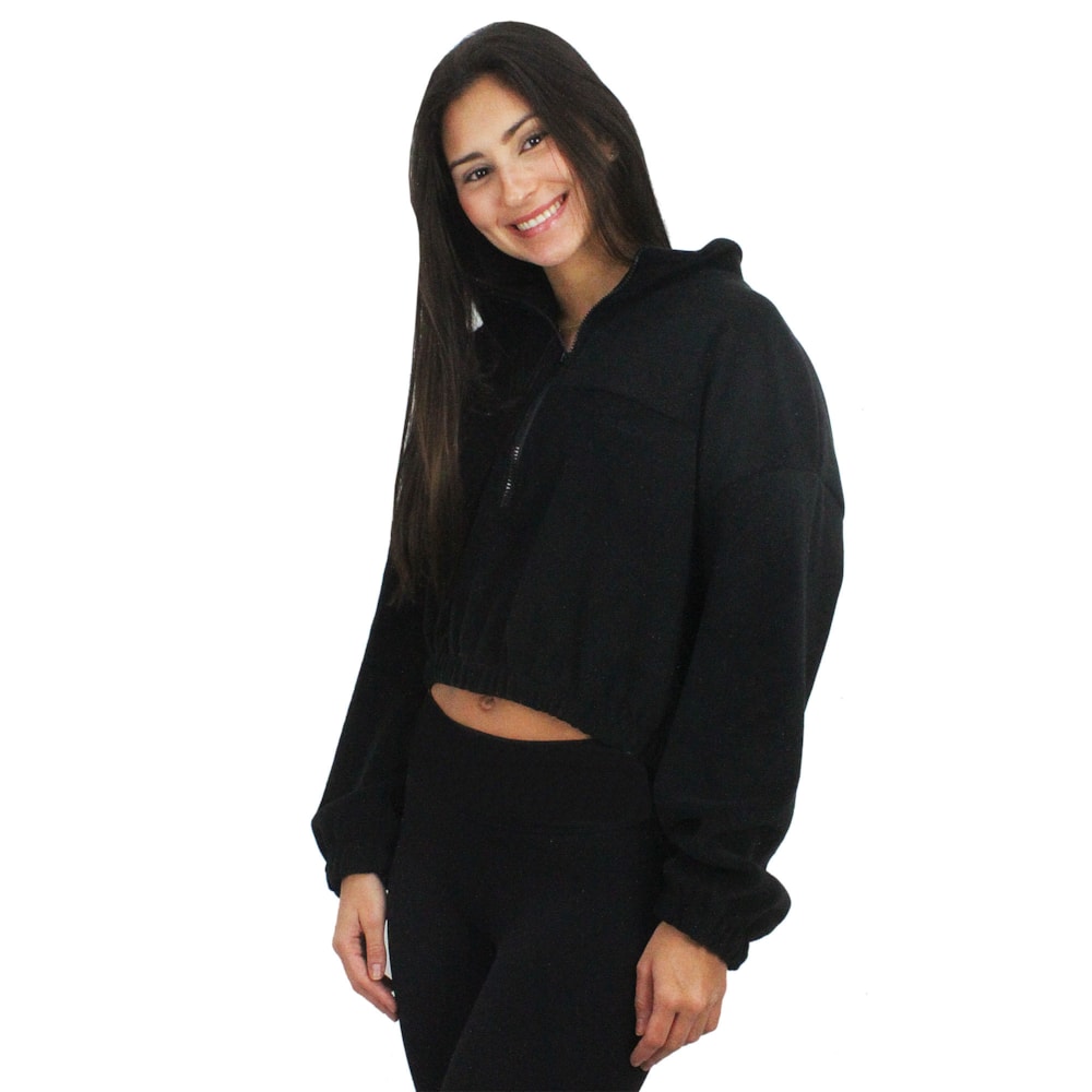 O Moletom Volcom Especial Soft Black é produzido em tecido Soft Fleece 96% Poliéster e 04% Elastano, modelagem cropped, barra e mangas com acabamento elástico, gola alta e zíper frontal. O tradicional logo Volcom bordado no peito.