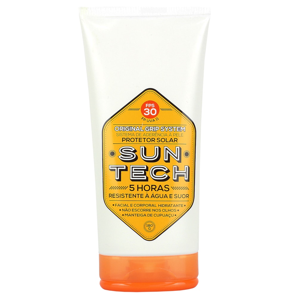 O Protetor Solar Suntech foi desenvolvido para ser usado durante à pratica de esportes, apresenta textura leve e não oleosa com absorção extra rápida e toque seco. Formula desenvolvida com gryp system que garante maior aderência à pele, não escorre nos olhos e tem eficácia comprovada por até 5 horas mesmo em contato com a água.
