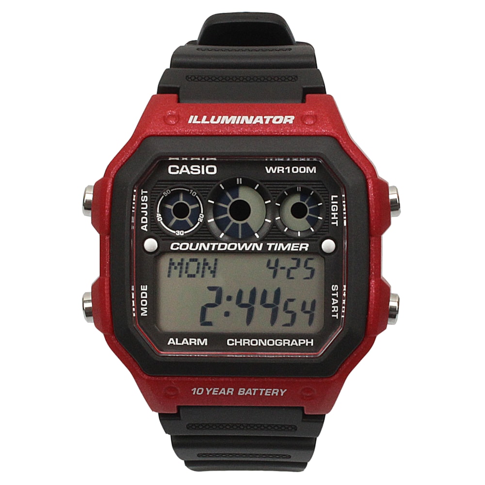 Relógio Casio AE-1300WH-4AVDF-SC conta com 29 fusos horários mundiais (48 cidades), exibição do código da cidade, horário de verão (liga/desliga)