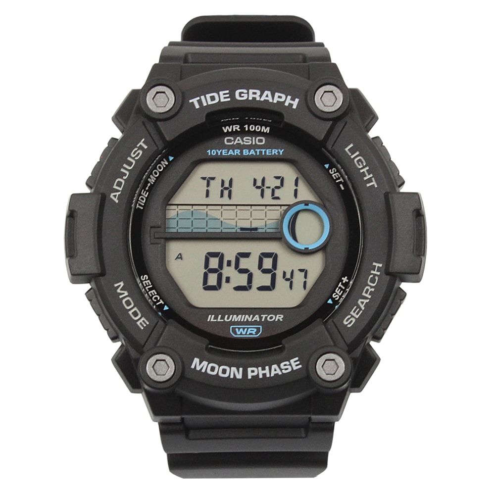 O Relógio Casio WS-1300H-1AVDF-SC é o companheiro ideal para os amantes de esportes marítimos. Design exterior pensado para ser durável, resistência à água a até 100 metros e duração da bateria de 10 anos. Apresenta gráfico de marés integrado, os dados lunares e luz de LED, garantindo uma leitura fácil mesmo no escuro, para oferecer tudo o que um entusiasta de esportes aquáticos precisa, na ponta dos dedos. Com cronômetro, timer e alarme, esses relógios versáteis levam você diretamente de casa ou do escritório para o mar.