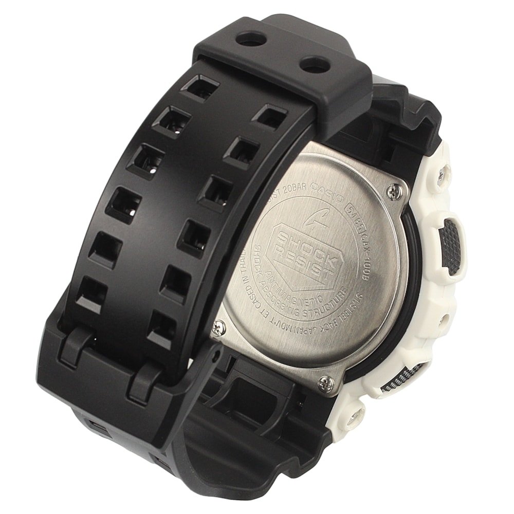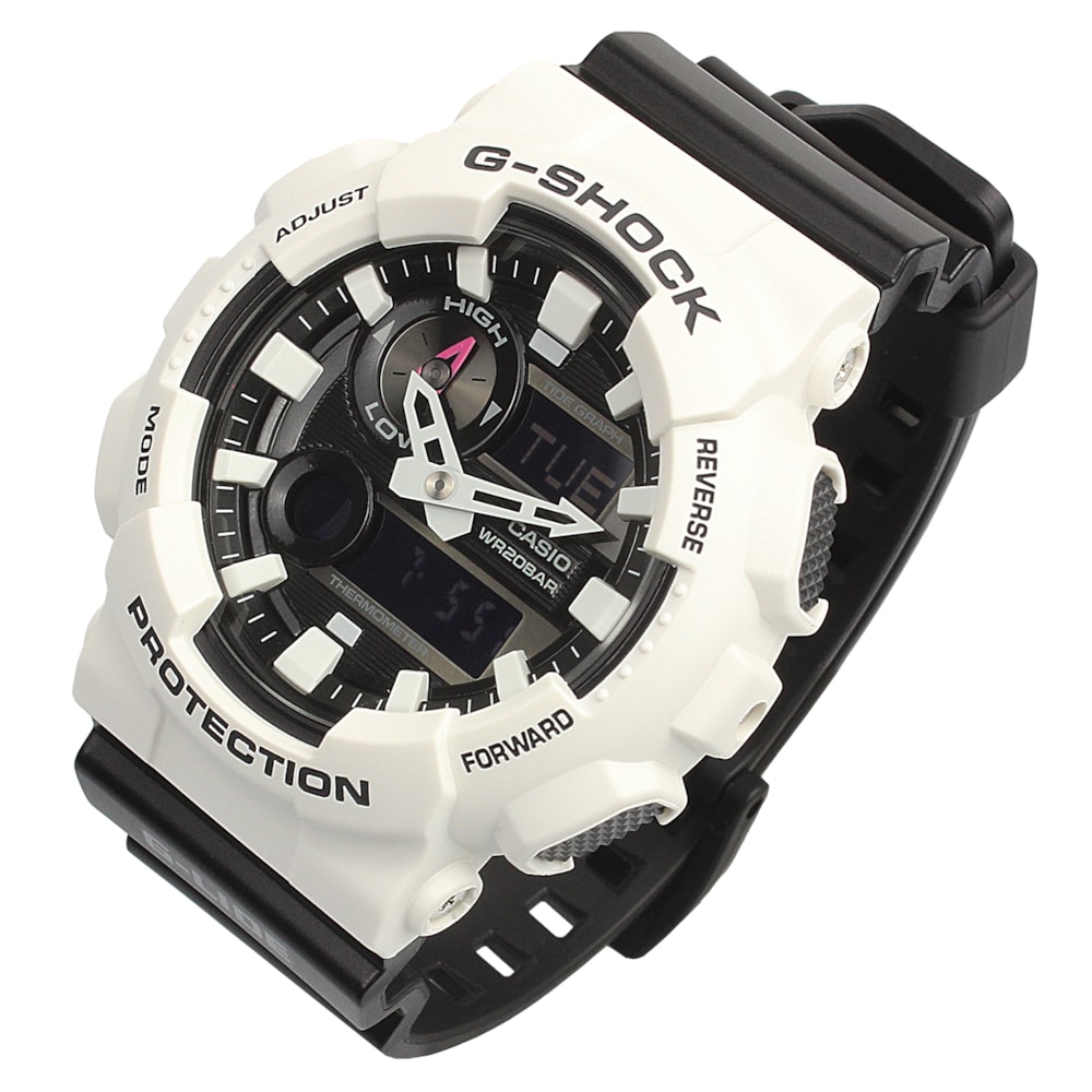 O aro do mostrador e os ponteiros elevados geram uma profundidade tridimensional. O popular design de três ponteiros G-SHOCK incorpora um mostrador analógico no centro, com mostradores digitais em cada um dos lados.