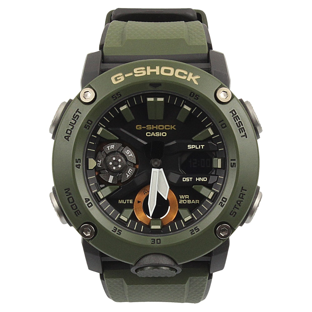 O G-Shock GA-2000-3ADR tem a estrutura de proteção principal em carbono