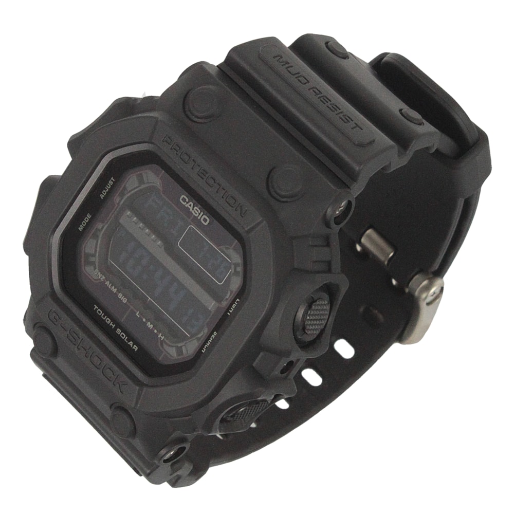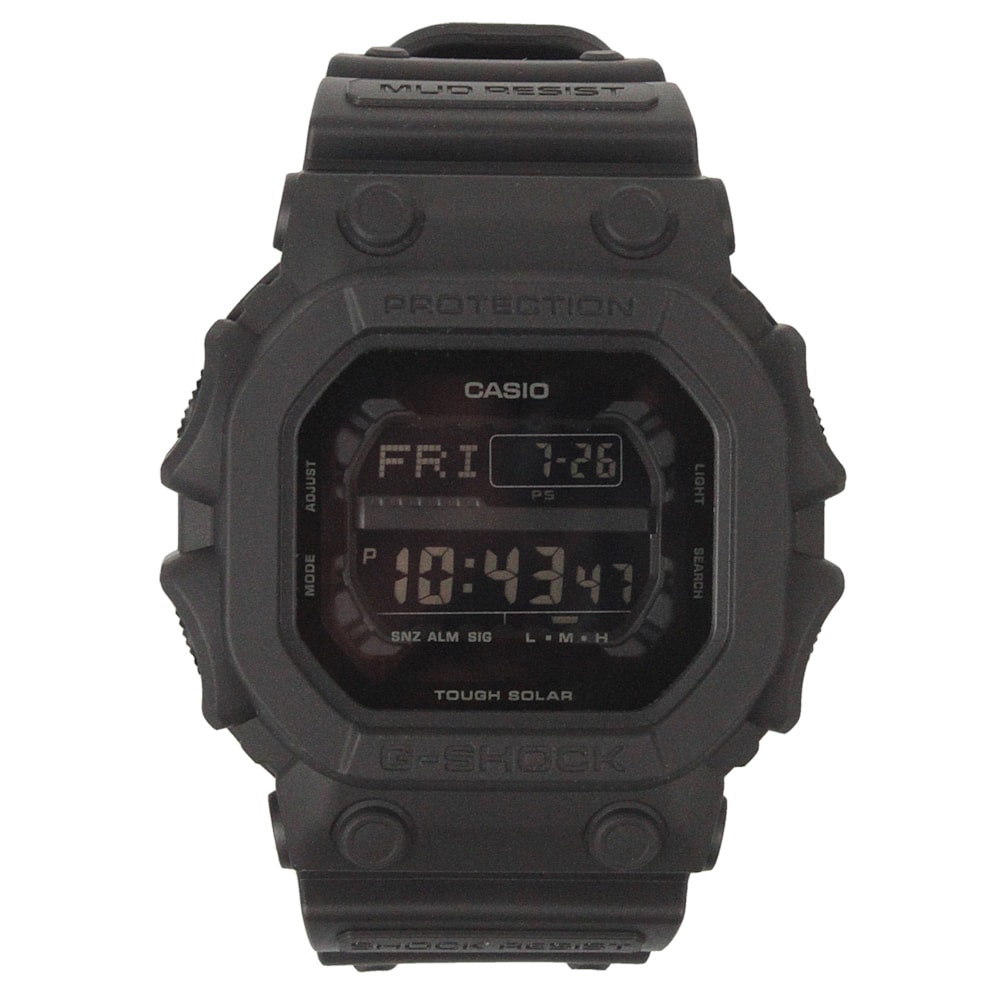 G-SHOCK, o relógio que define o padrão de durabilidade. Este modelo é baseado no GX-56, que é projetado para suportar o impacto de qualquer direção. Um simples acabamento em preto fosco permite que a forma do relógio em si para sair, enquanto a fivela tem um acabamento de placa de íon preto.