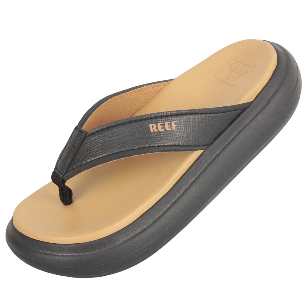 A Sandália Reef Cushion Bondi Black é construida sobre uma plataforma de EVA com aproximadamente 4cm, logo Reef em silk na tira e em baixo relevo na palmilha. Palmilha extramacia e solado tratorado para maior segurança e conforto.