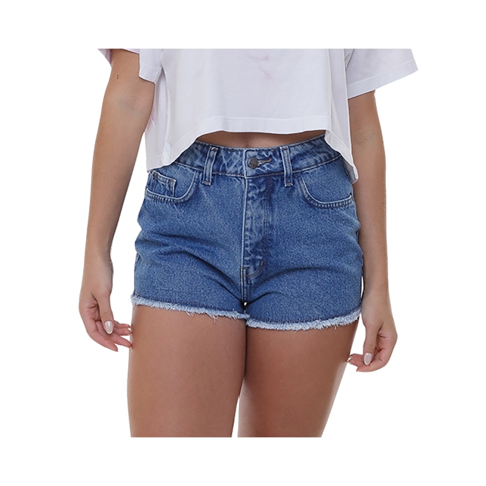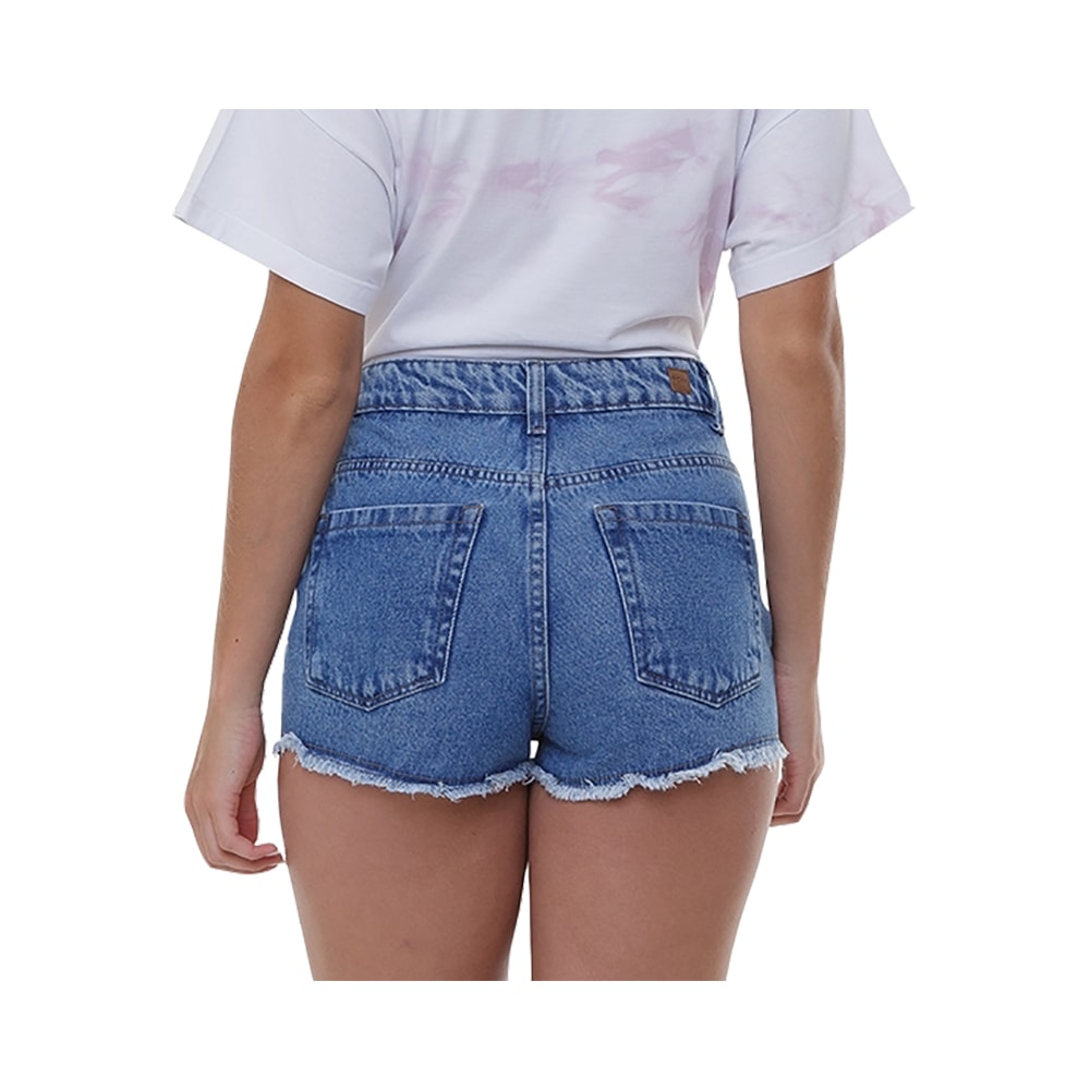 O Short Jeans Roxy Be High Blue é produzido em Jeans 100% Algodão com lavagem azul claro, modelagem com cintura alta e barra desfiada,de talhe no cós com o logo Roxy em etiqueta de couro sintético personalizada.