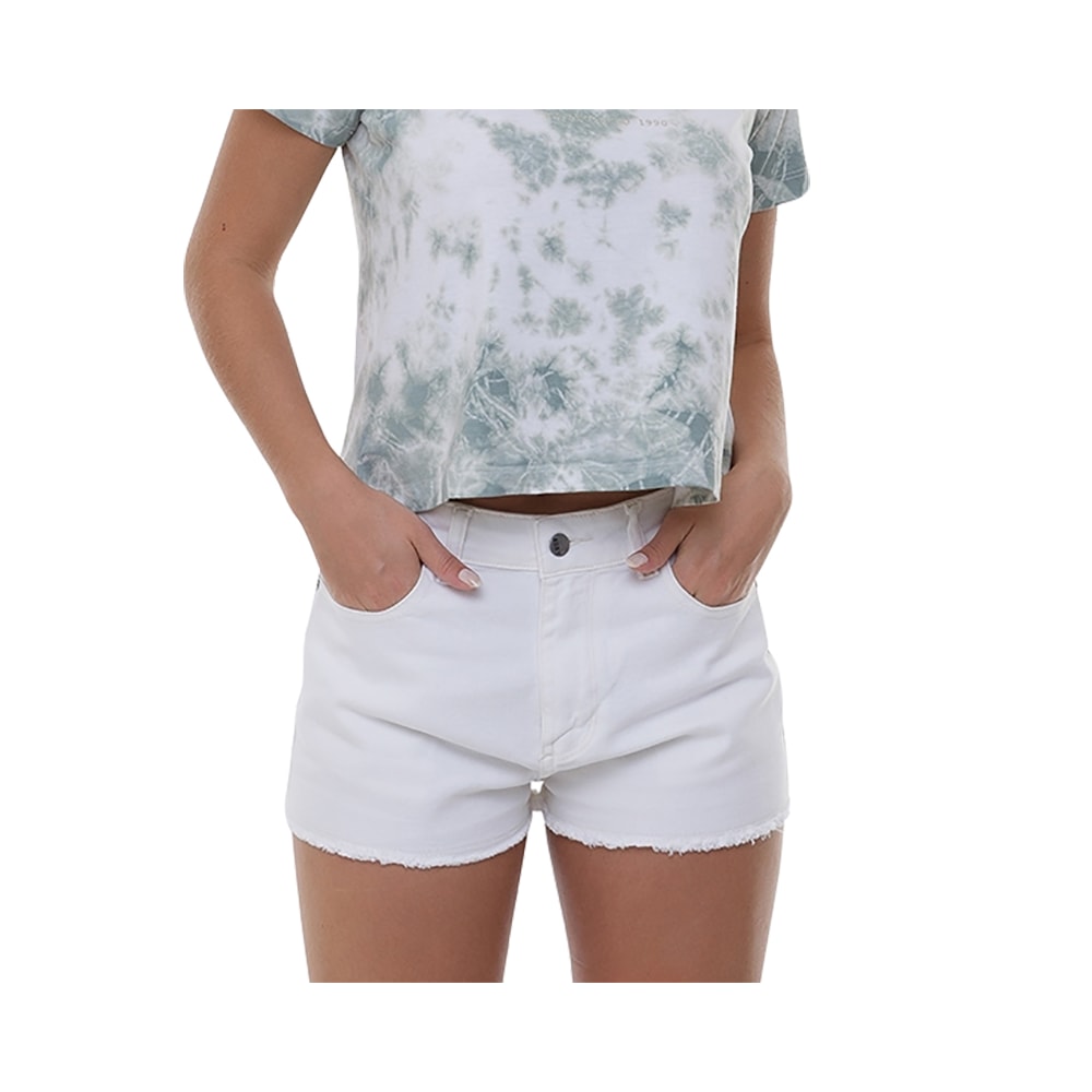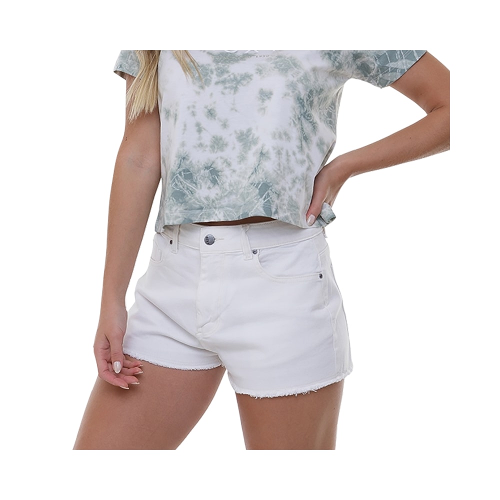 O Short Jeans Roxy Be Shine White é produzido em Sarja Off White 100% Algodão, modelagem com cintura alta e barra desfiada,detalhe no cós com o logo Roxy em etiqueta de couro sintético personalizada.