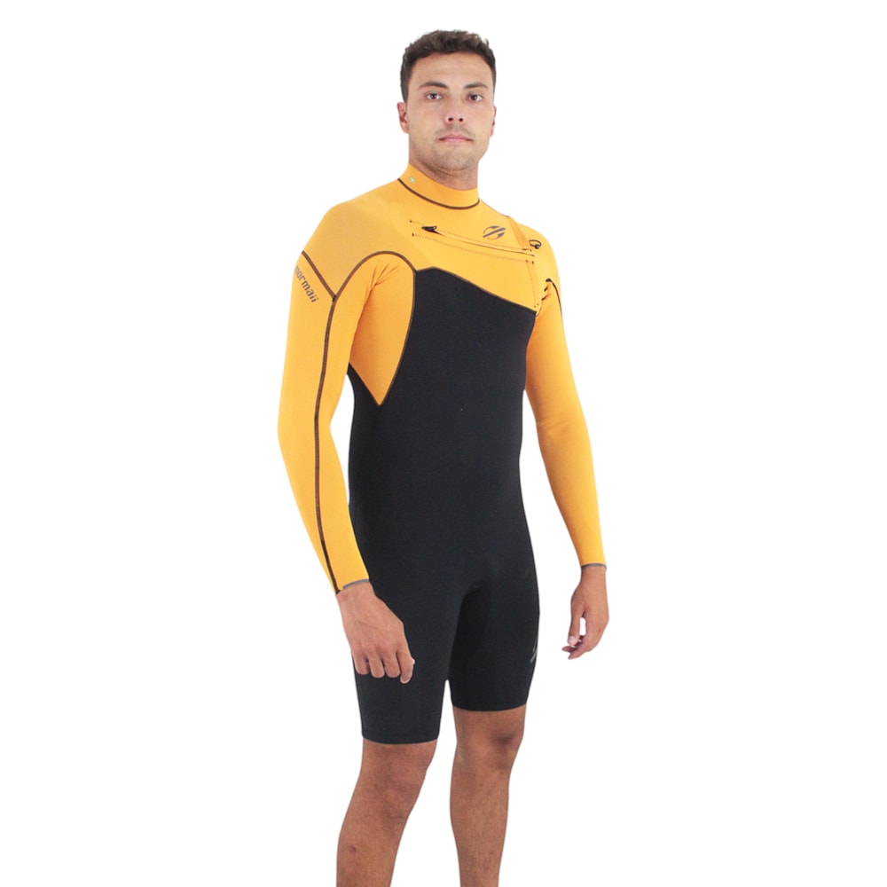 Nome: Short John Mormaii Flexxxa Pro 1mm Manga Longa Chest Zip Preto Laranja