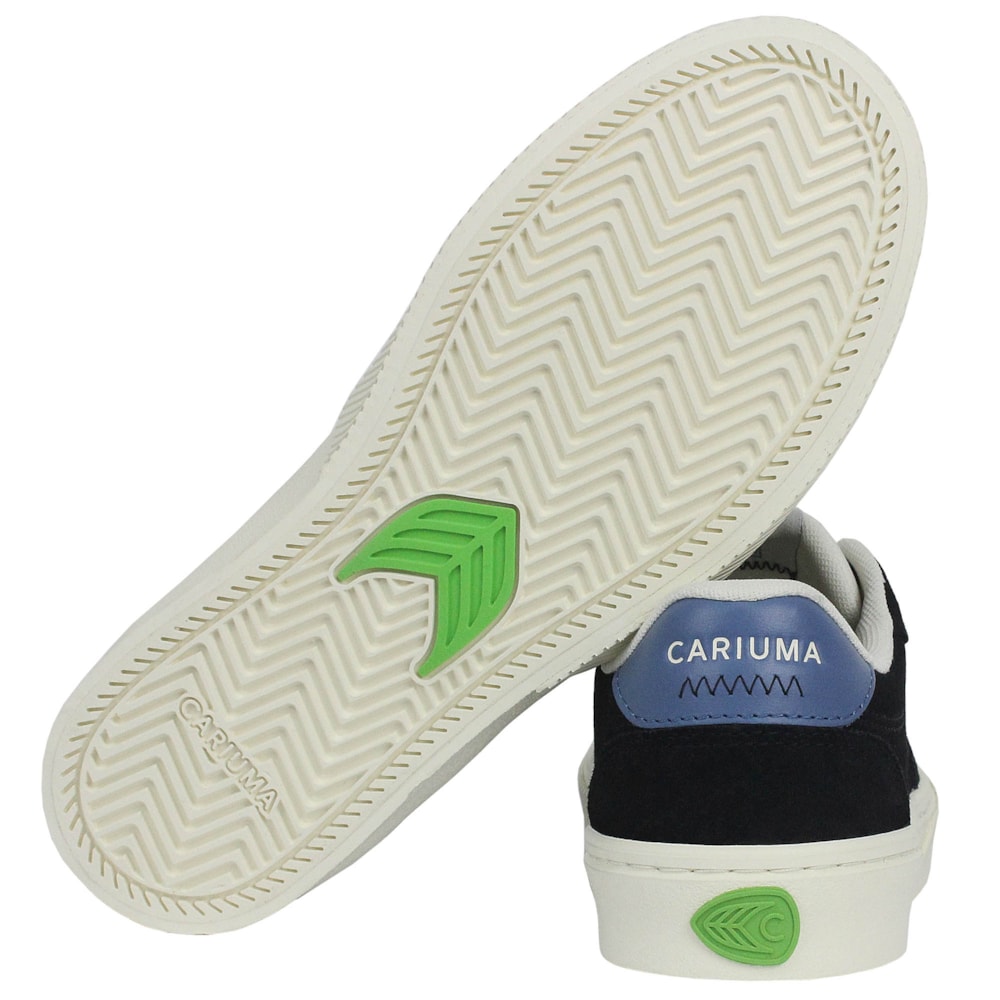 O Tênis Cariuma Naioca Black Suede Feminino tem o cabedal produzido em camurça premium certificada pelo Leather Working Group (LWG), garantindo materiais sustentáveis de alta qualidade. Seu forro de malha reciclada aumenta a respirabilidade, enquanto o solado de borracha natural antiderrapante oferece aderência e segurança. Os cadarços são confeccionados com rPET (plástico reciclado) e algodão orgânico, trazem ponteiras de metal em baixo-relevo para um acabamento sofisticado.