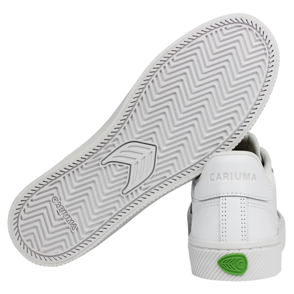 O Tênis Cariuma Salvas White Leather Importado tem o cabedal produzido em couro premium proveniente de curtumes com certificação Gold Rated LWG, forro em malha reciclada