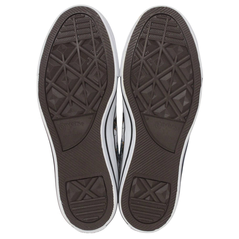 Tênis Converse tradicional, confeccionado em tecido de lona. Solado e bico em borracha vulcanizada.