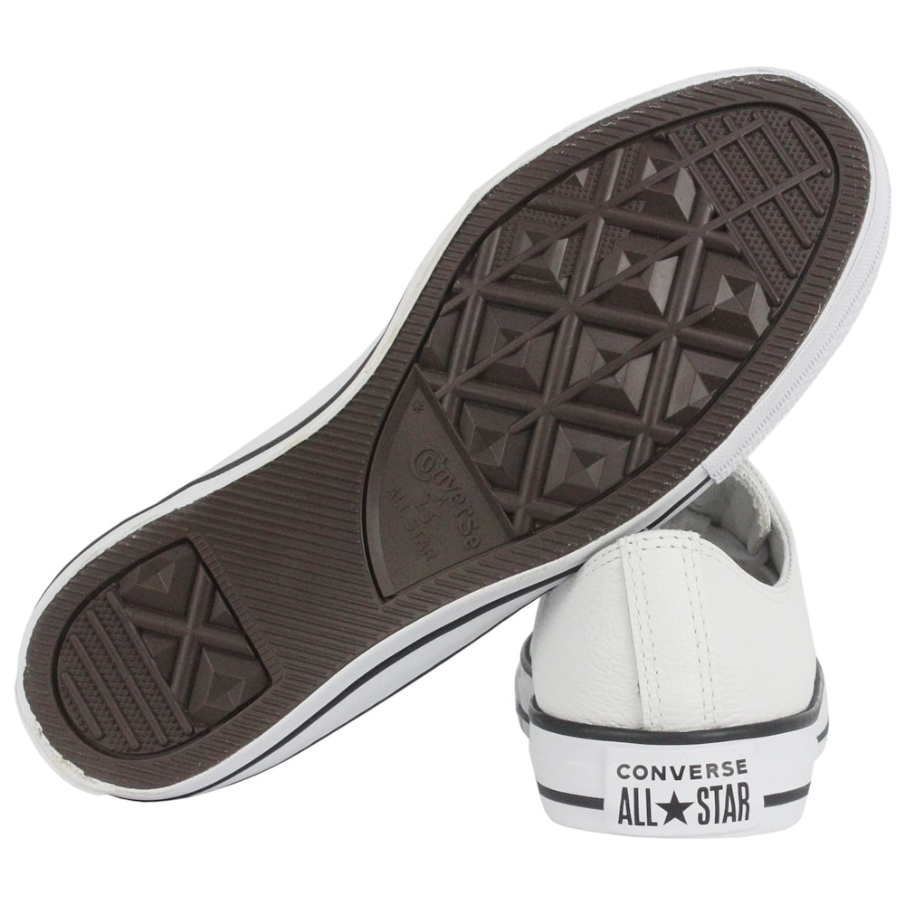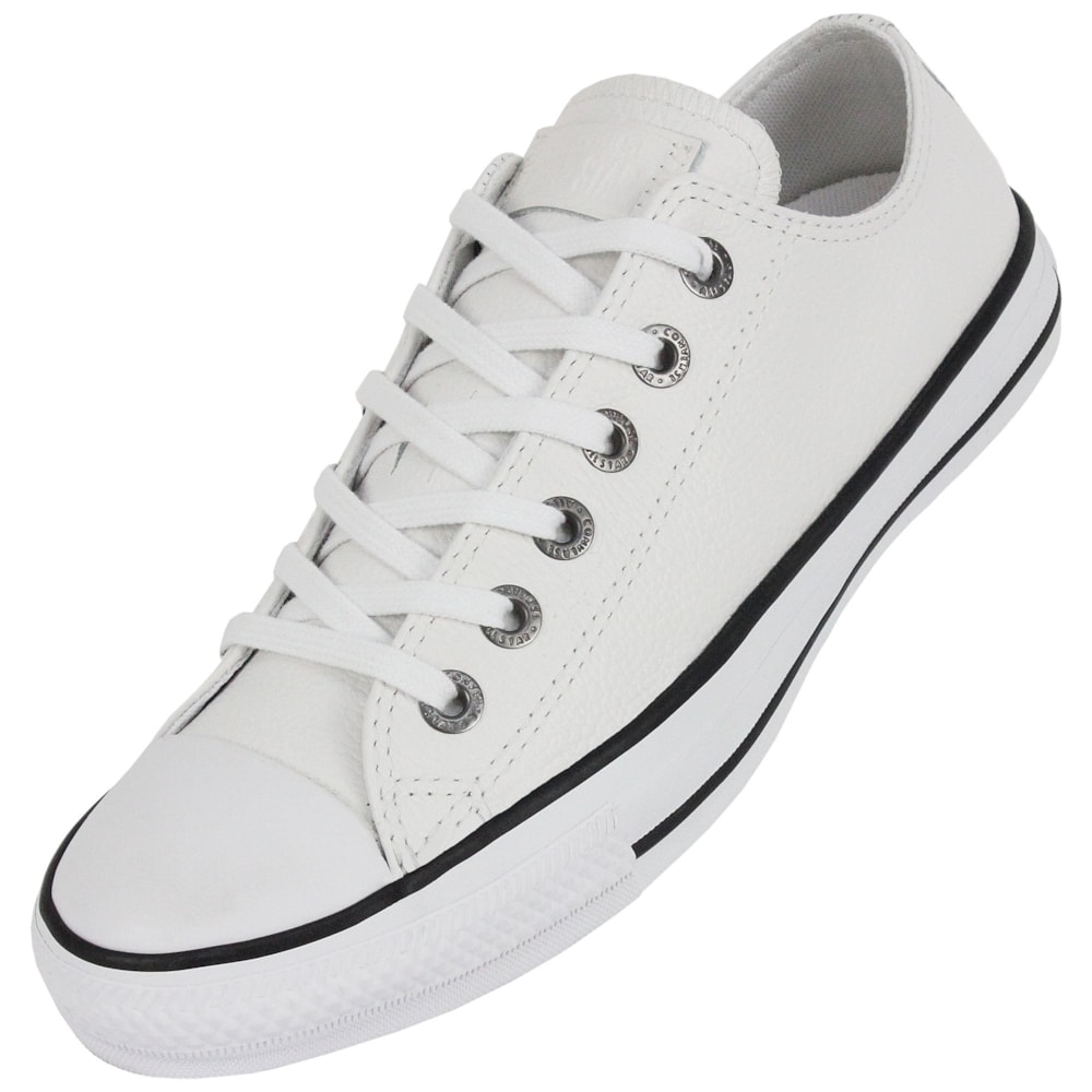 Tênis Converse tradicional de cano baixo. Confeccionado em couro natural branco. Uma nova versão do modelo European com detalhes Clean que não alteram o poder deste modelo. Detalhe para os ilhoses em preto seguindo a cor da vira da borracha. Na parte interna do pé, contém dois ilhoses para a melhor transpiração dos pés. Solado e vira de borracha. Um tênis casual e moderno, é o sucesso em todas as ocasiões.