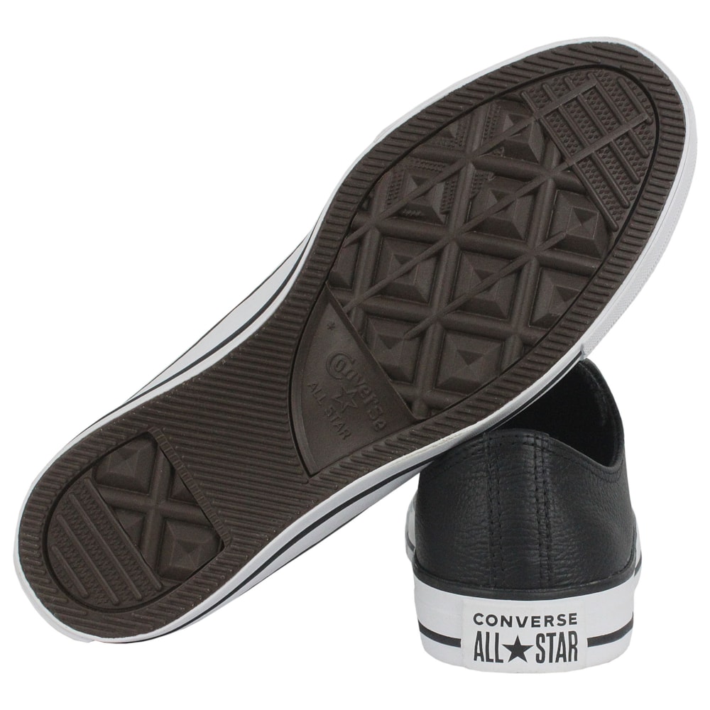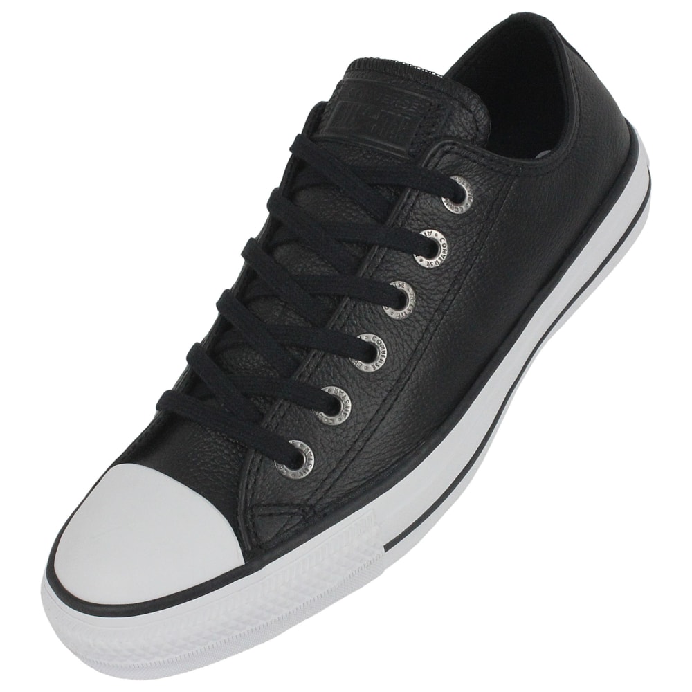 Tênis Converse tradicional de cano baixo. Confeccionado em couro natural preto. Uma nova versão do modelo European com detalhes Clean que não alteram o poder deste modelo. Detalhe para os ilhoses em preto seguindo a cor da vira da borracha. Na parte interna do pé, contém dois ilhoses para a melhor transpiração dos pés. Solado e vira de borracha. Um tênis casual e moderno, é o sucesso em todas as ocasiões.