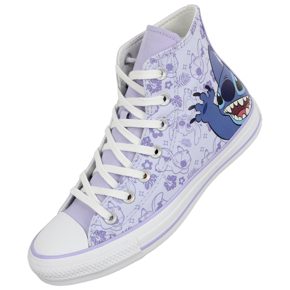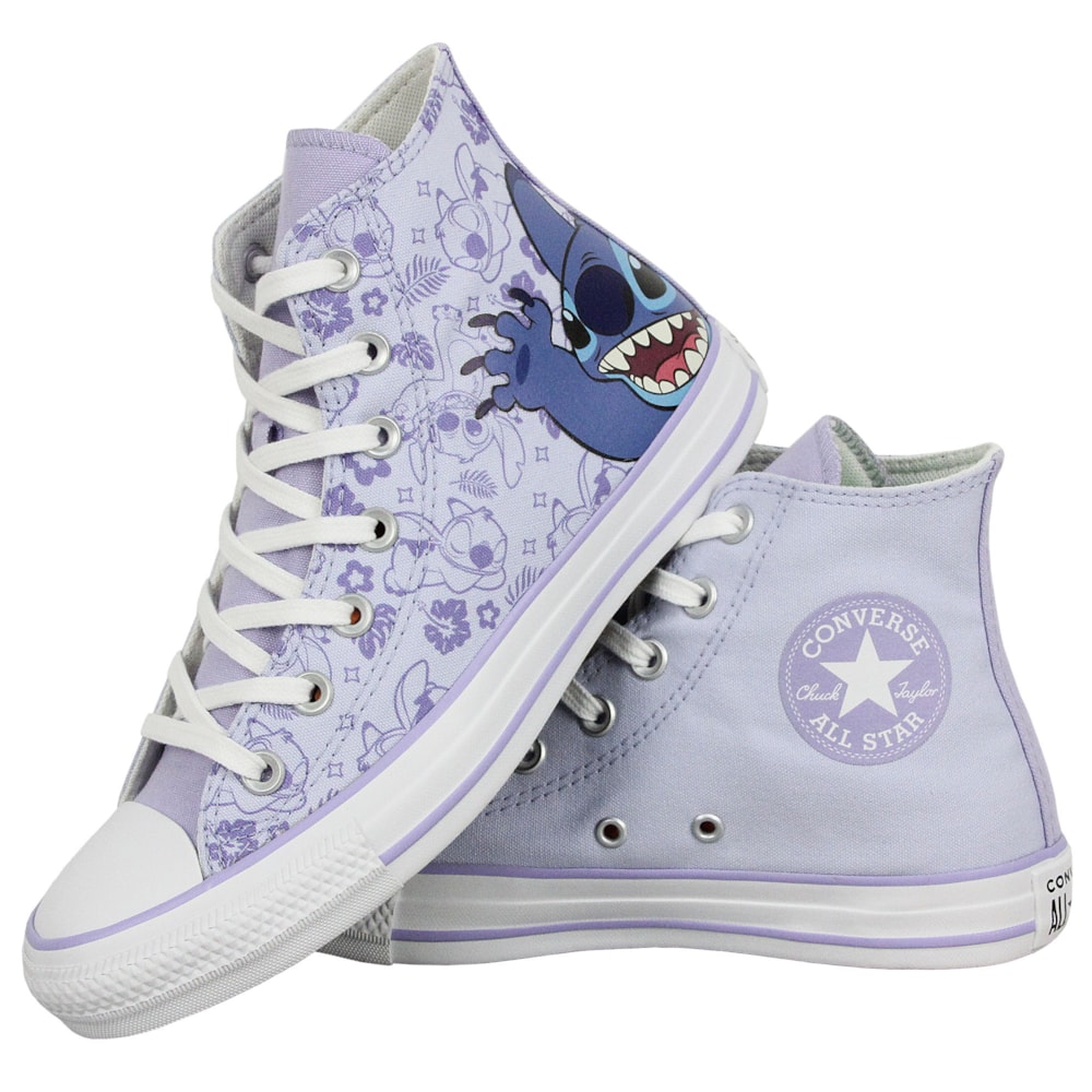Tênis Converse Chuck Taylor All Star Hi Disney Stitch Azul Gelo Lilás Violeta Branco