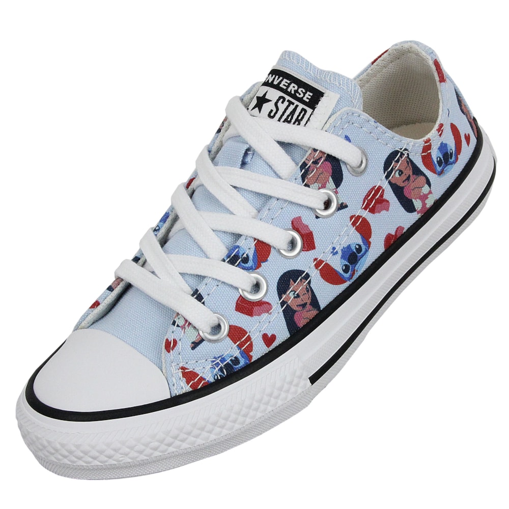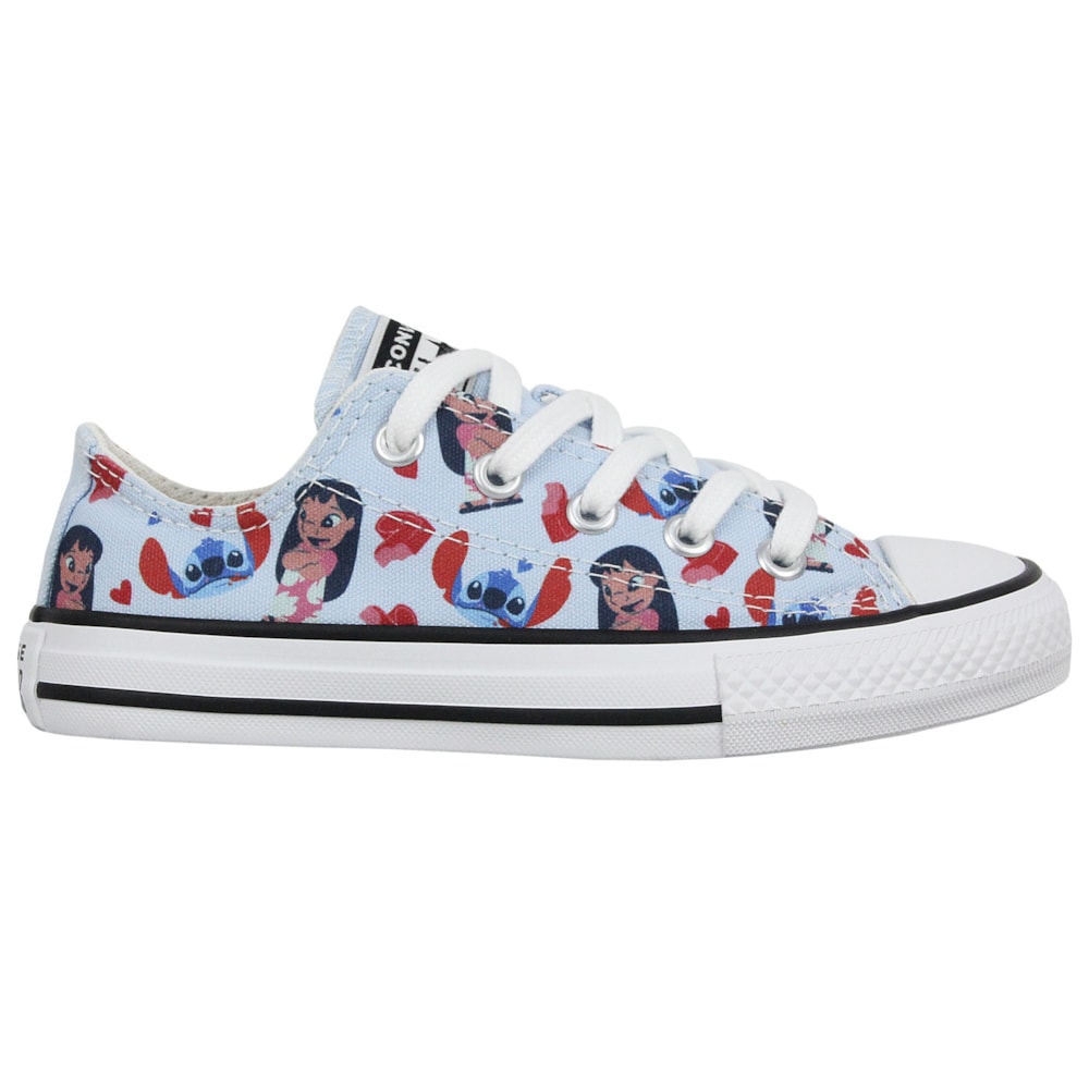 Tênis Converse Chuck Taylor All Star Infantil Disney Stitch Azul Super Lua Branco Preto