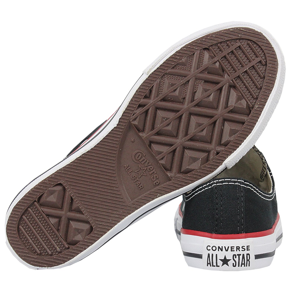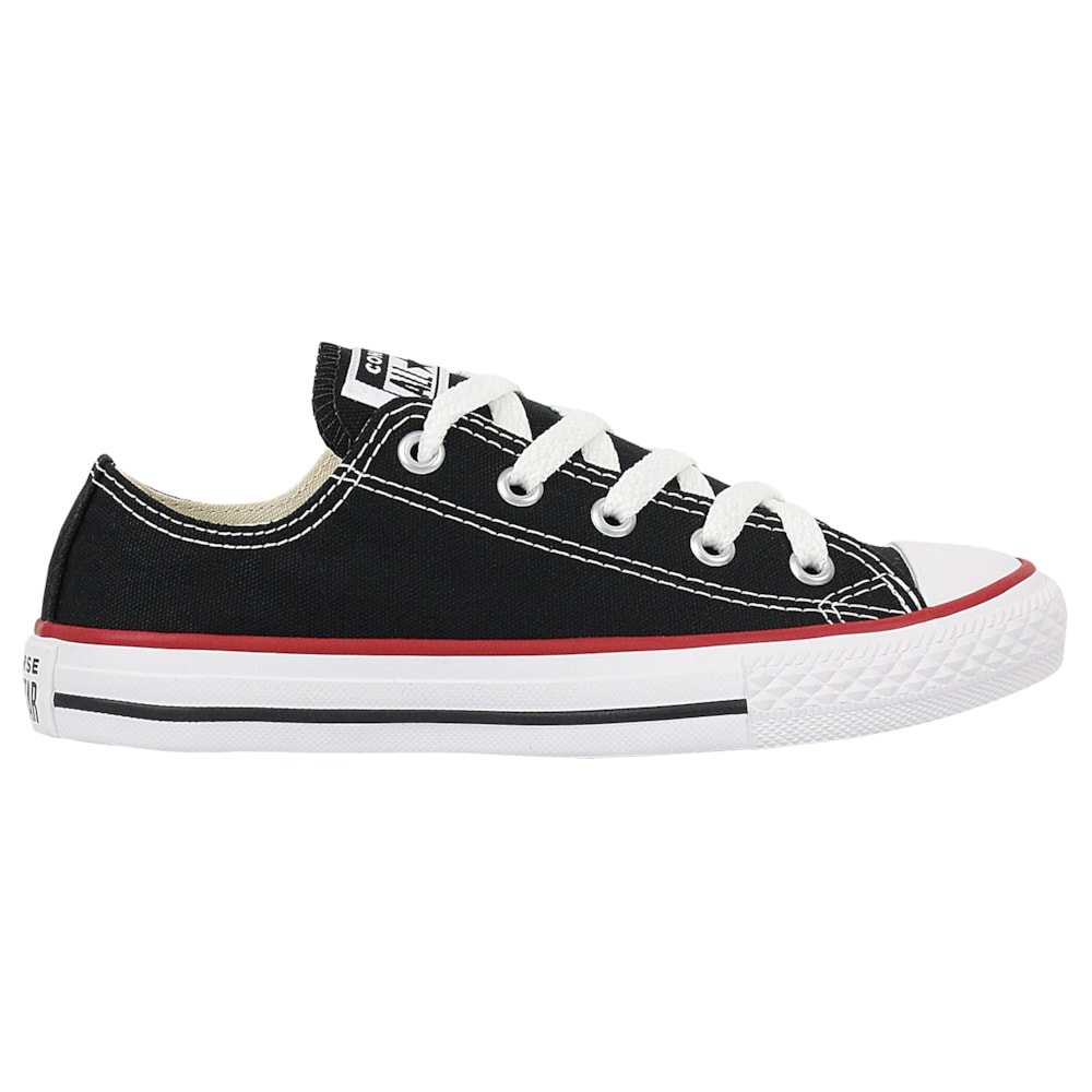 Tênis Converse tradicional de cano baixo, confeccionado em tecido de lona.
