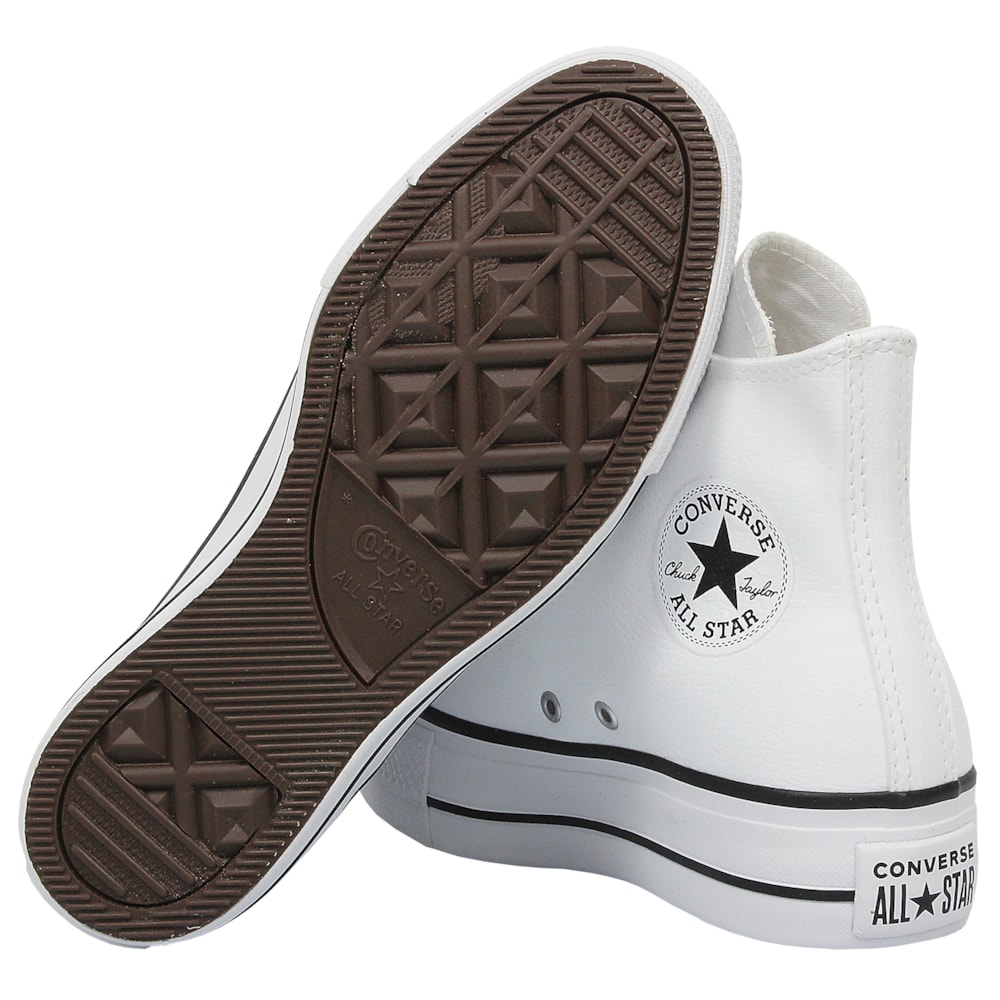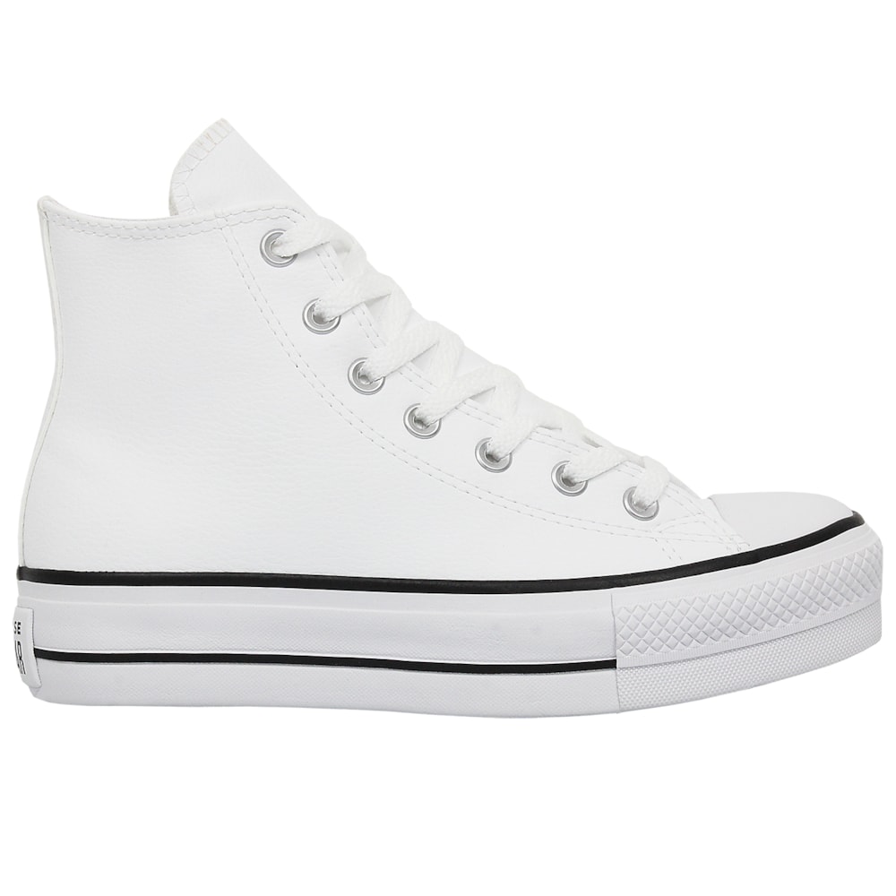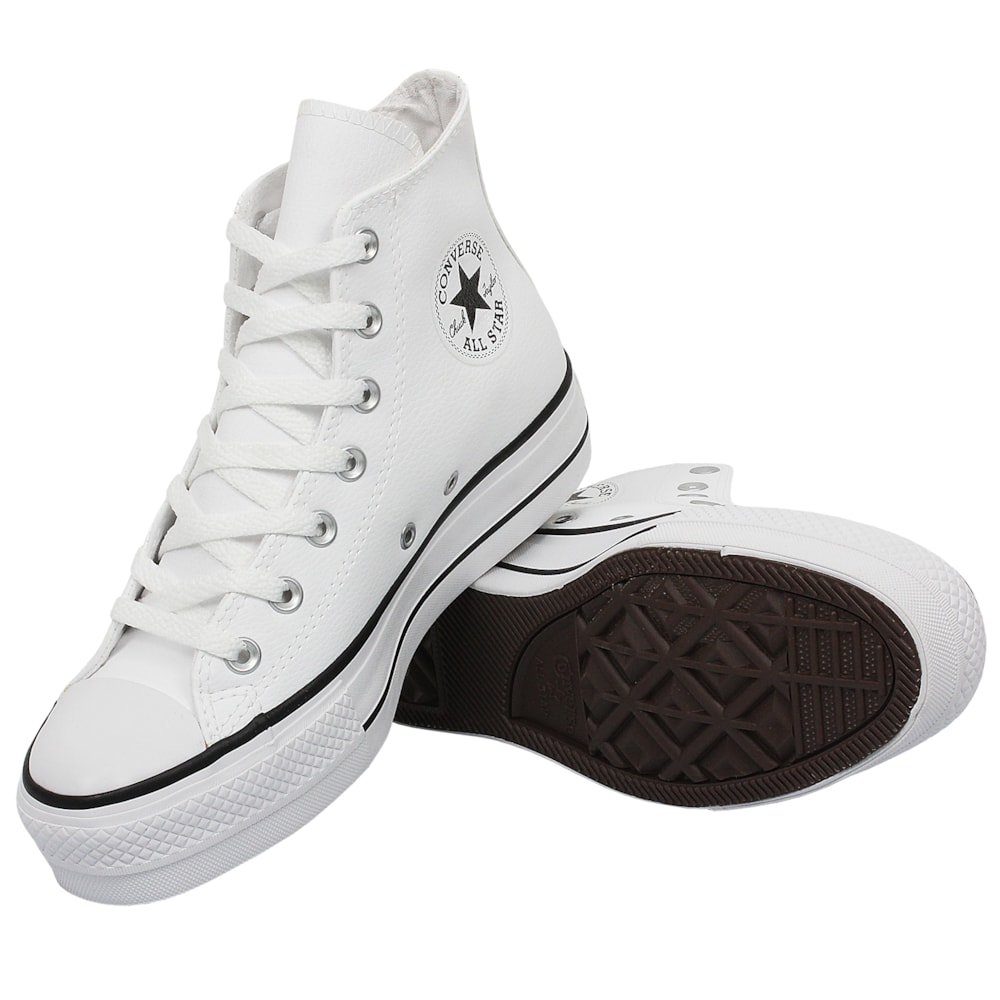 Tênis Converse de cano alto baseado no design clássico dos tênis Converse, construido em cima de um solado alto tipo plataforma de aproximadamente 3cm de altura.