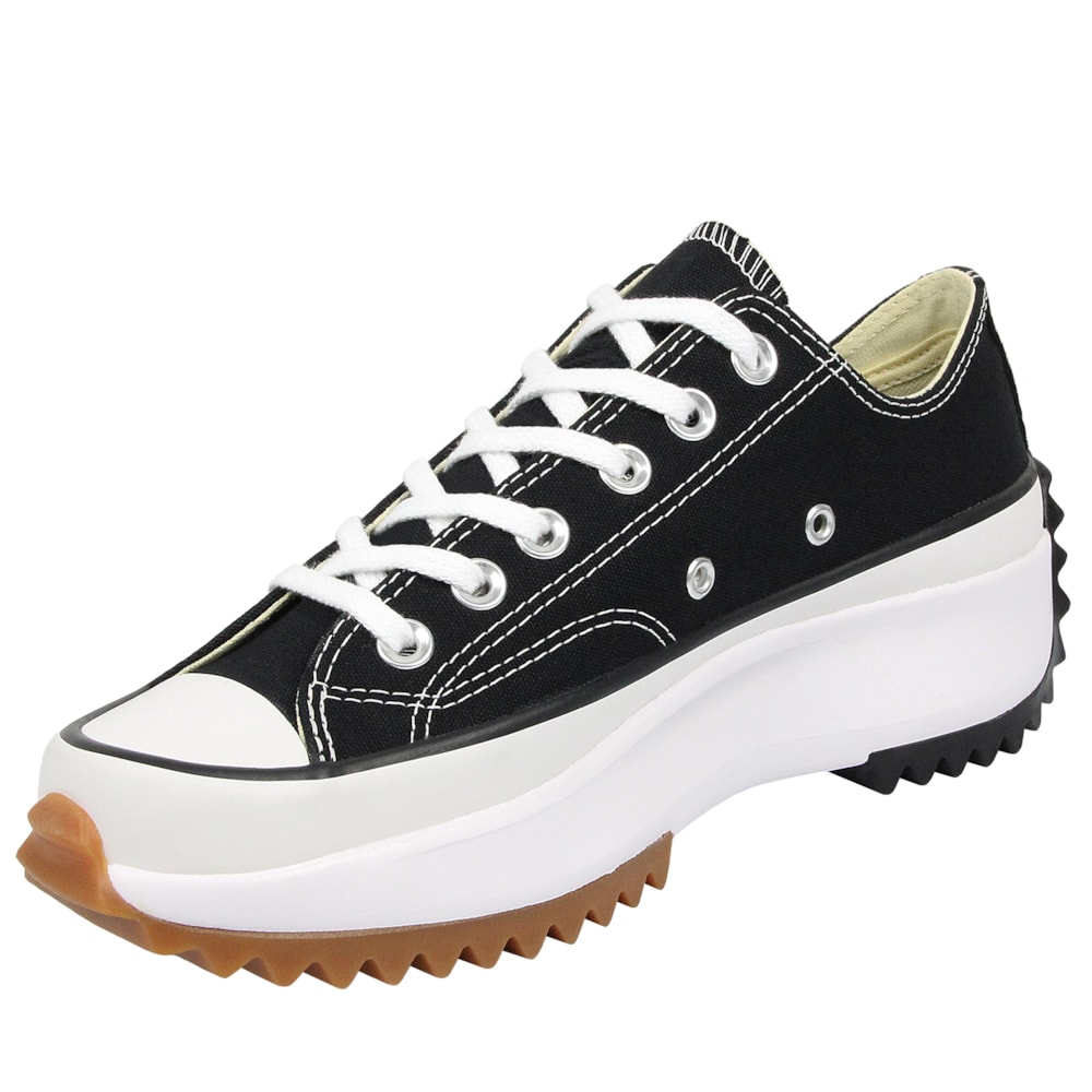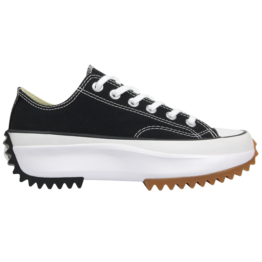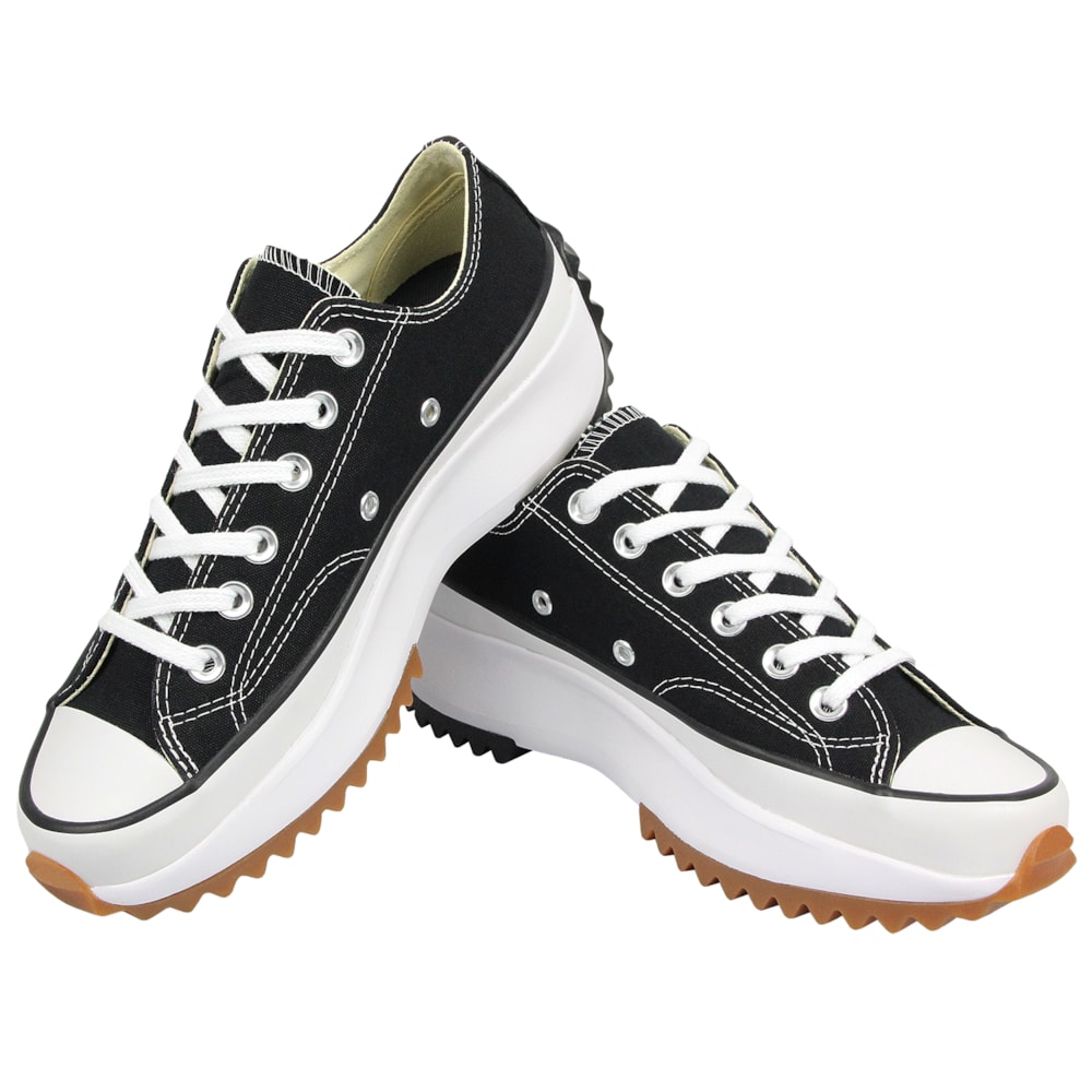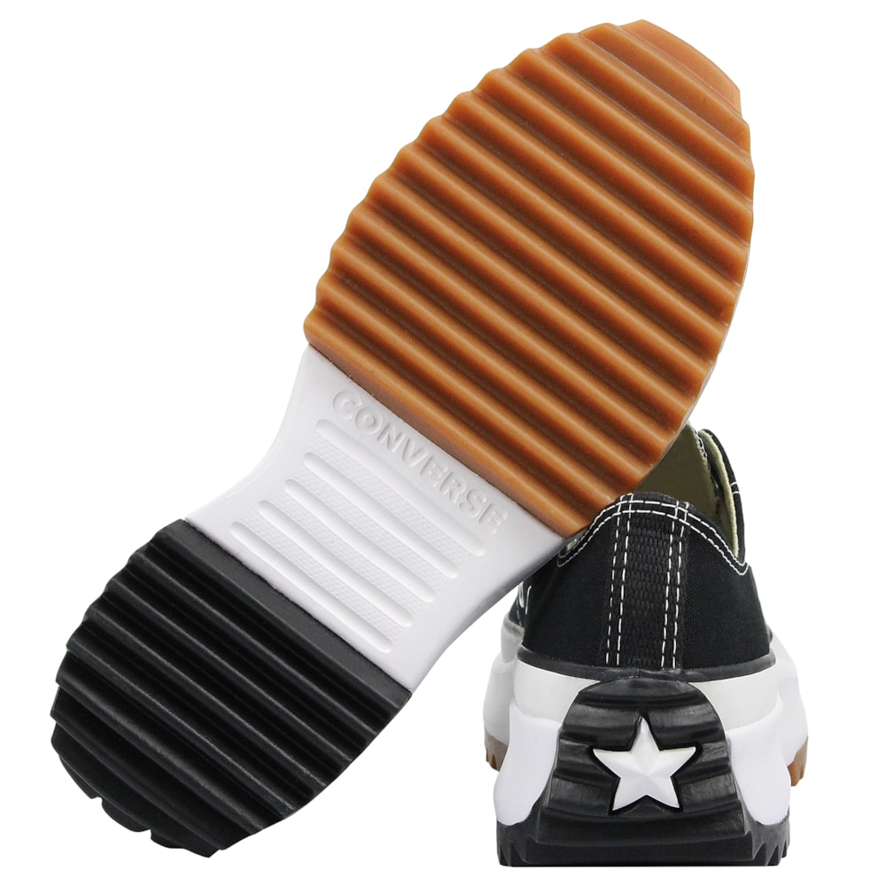 O Tênis Converse Chuck Taylor All Star Plataform Run Star Hike Preto Branco Marrom Mel apresenta a silhueta tradicional da linha Chuck Taylor, porém construido sobre uma plataforma de EVA que garante maior leveza e conforto, solado tratorado bicolor. Cabedal confeccionado em tecido de algodão tipo lona. Palmilhas SmartFoam que garante maior amortecimento.