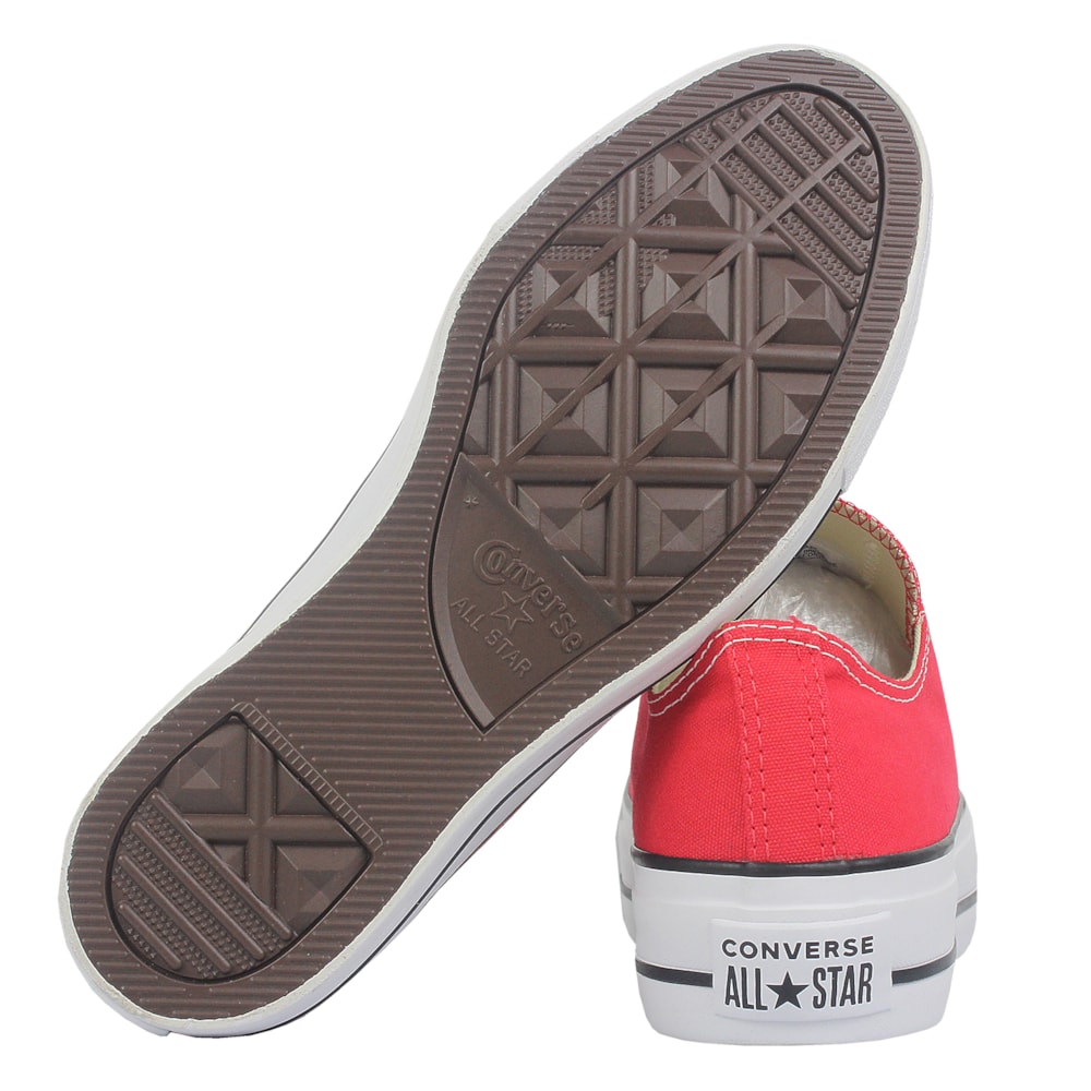 Tênis Converse de cano baixo, construido em cima de um solado alto tipo plataforma de aproximadamente 3cm de altura. Confeccionado em tecido de algodão tipo lona. Produto construido sobre a forma tradicional da marca com salto alto. Para a transpiração adequada dos pés, o produto conta com dois ilhóses na parte interna de cada um dos pés. Solado e vira de borracha.