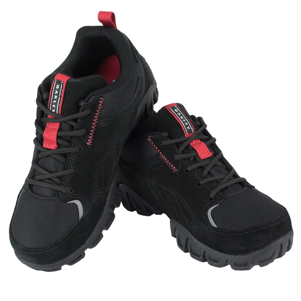 O Tênis Oakley Attack Black Red tem o cabedal produzido em camurça com detalhes em lona. Logo Oakley em metal e ilhoses personalizados ,forro em tecido que absorve umidade