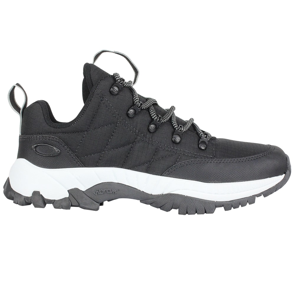 O Tênis Oakley Confront Low II Jet Black tem o cabedal produzido em tecido Ripstop que garante maior durabilidade. Logo Oakley em metal e ilhoses personalizados ,forro em tecido que absorve umidade. Entresola Vibram® SPE e solado Vibram® que proporciona uma maior aderência no contato com o solo.