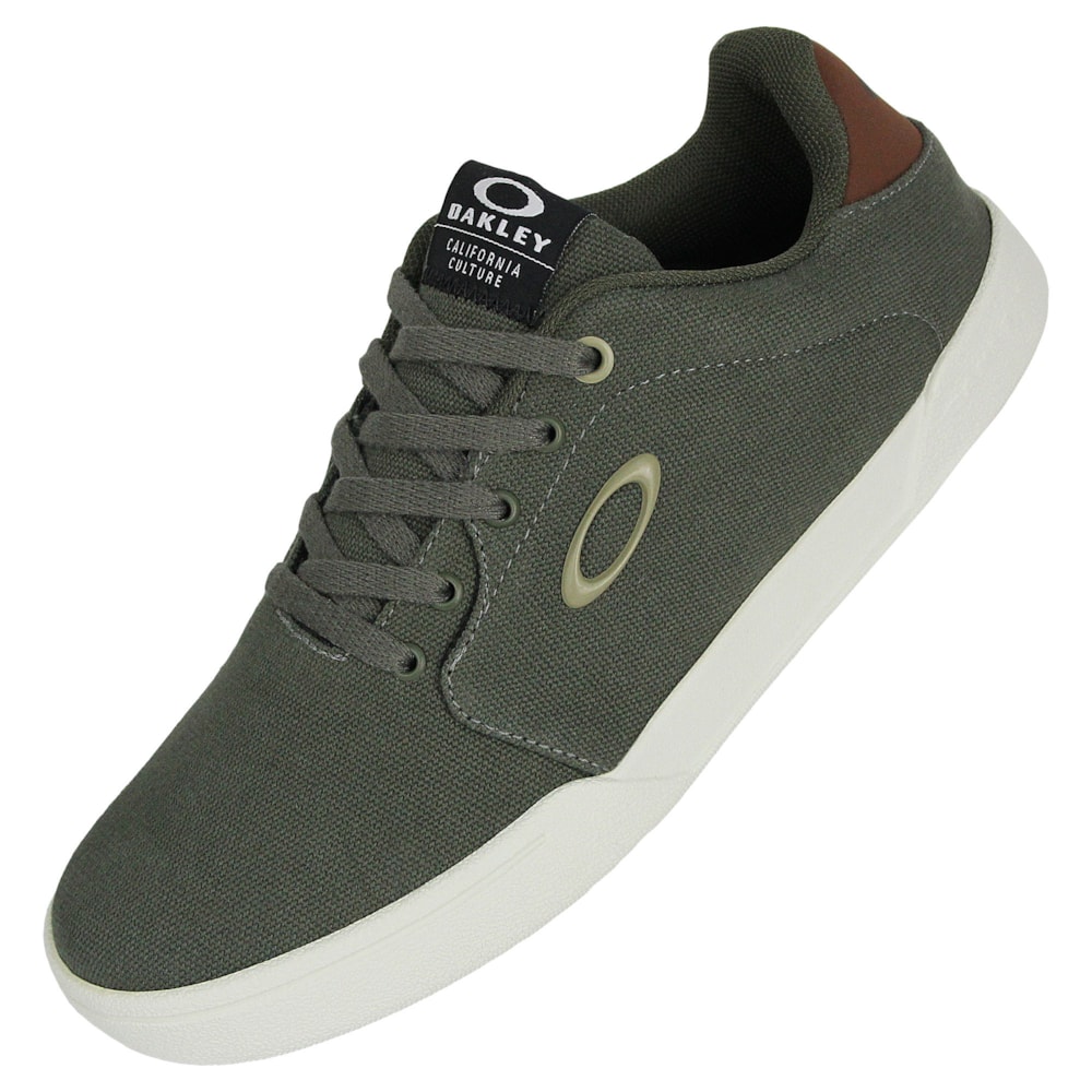 O Tênis Oakley Flyer Dark Brush tem o cabedal produzido em lona reciclável na parte superior. Logo Oakley em metal e ilhoses personalizados. Solado em borracha que proporciona uma maior aderência no contato com o solo.