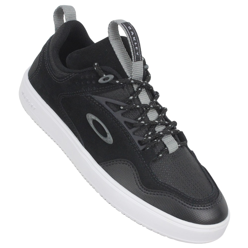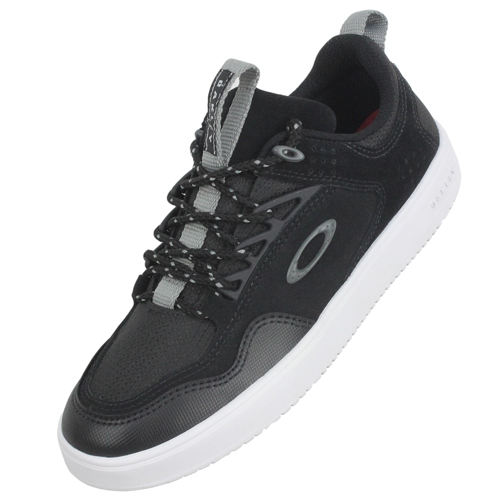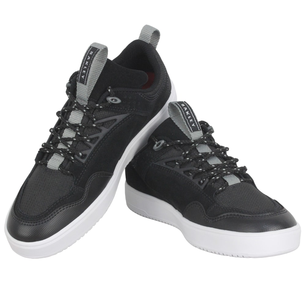 O Tênis Oakley Radar Jet Black tem o cabedal produzido em camurça com detalhes em lona. Logo Oakley em metal e ilhoses personalizados ,forro em tecido que absorve umidade Solado em borracha que garante maior conforto e resistência, palmilha perfurada que proporciona conforto e respirabilidade.