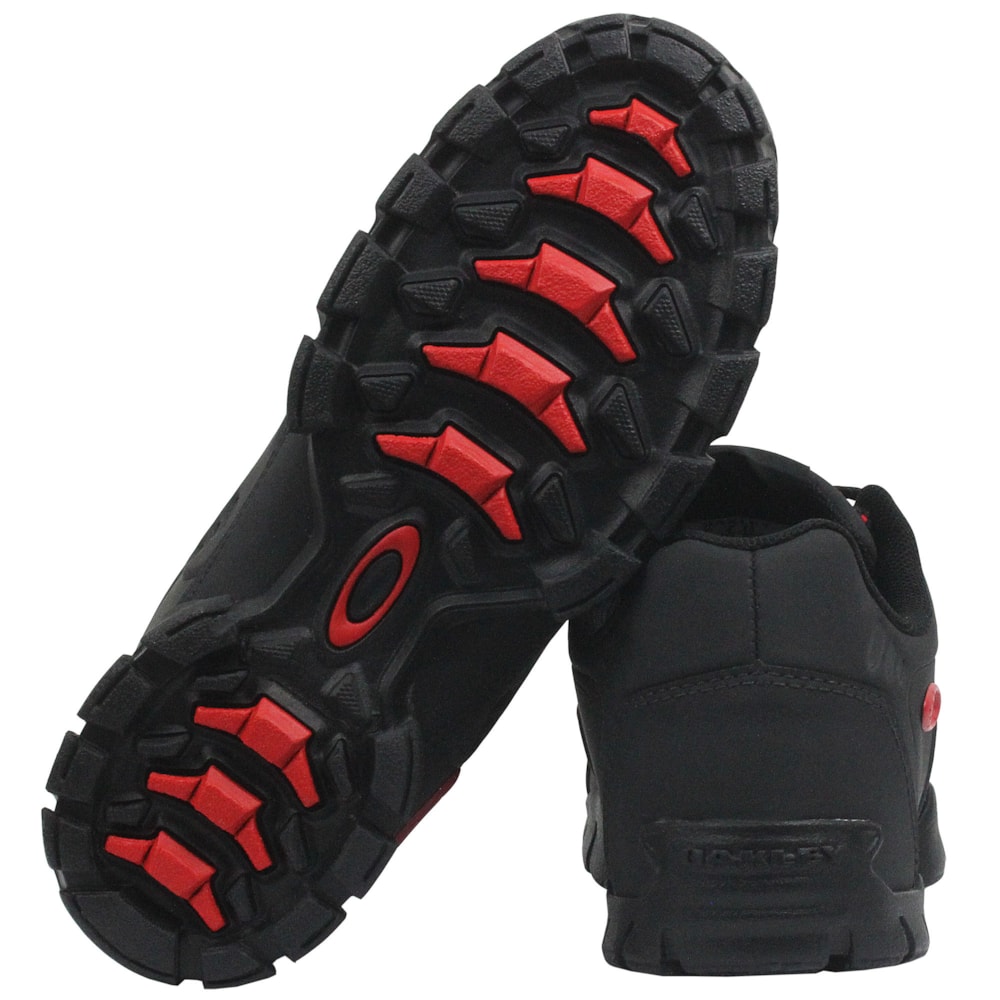 O Tênis Oakley Sterrn Black Red conta com cabedal produzido em material sintético, forro em tecido espesso para maior durabilidade e absorção de umidade. Solado em borracha de alta tração e resistência à abrasão, entressola moldada em EVA, logo Oakley Elipse em metal.