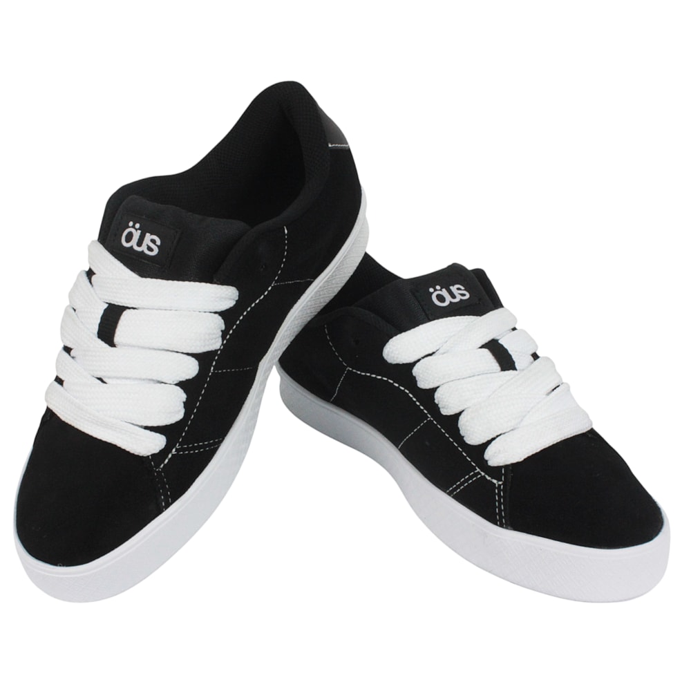 O Tênis Öus Döts Essencial Preto Branco II é produzido em camurça curtida sem metais pesados. Possui o forro esportivo que ajuda na respirabilidade dos pés e o solado feito de borracha A+, produzida com pequenos grânulos naturais da seringueira e borracha sintética, trazendo mais aderência ao solo. Além disso, possui palmilha responsiva que é feita de poliuretano e não deforma, mesmo sendo submetida a fortes impactos ou sendo utilizada por longos períodos. Seu formato anatômico permite suporte e encaixe adequado aos pés, o que a torna ideal para o uso no skate e cotidiano.