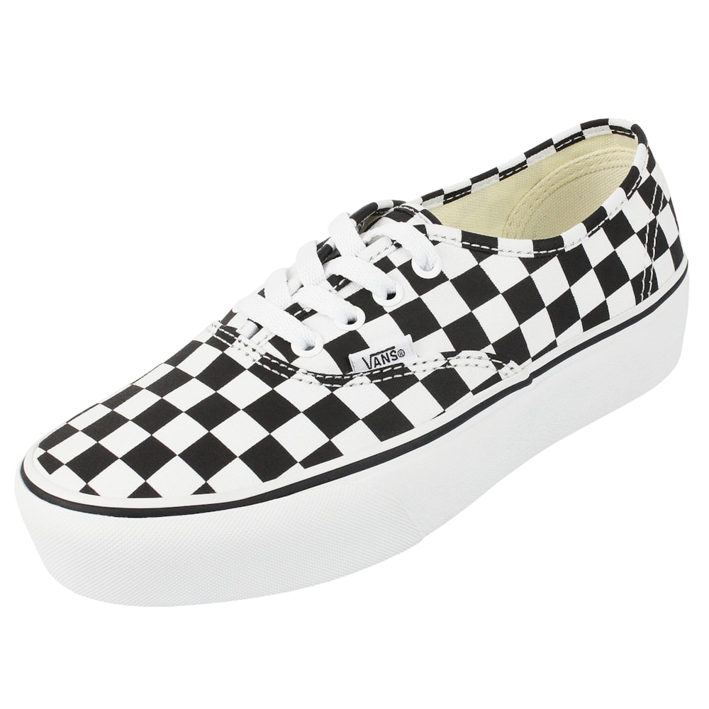 Marca: Vans Modelo: Tênis Vans Authentic Platform Checkerboard True White Cor: Preto e Branco Cabedal em Lona Solado Vulcanizado Palmilha Fixa e Super Macia Solado Waffle Plataforma Vulcanizado - maior flexibilidade, tração e conforto