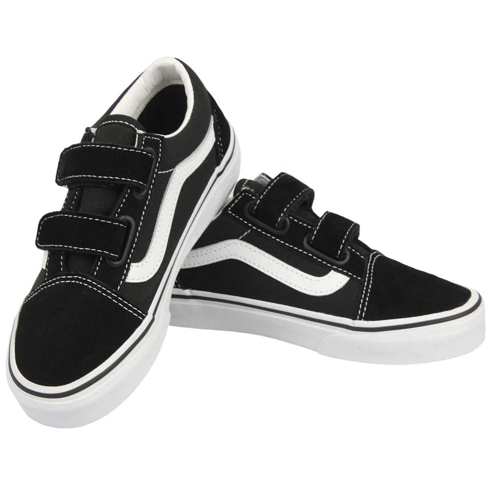 Marca: Vans Modelo: Old Skool Cor: Preto e Branco Cabedal em Lona e Camurça Solado Vulcanizado Palmilha Fixa e Super Mácia Solado Waffle Vulcanizado - maior flexibilidade, tração e conforto